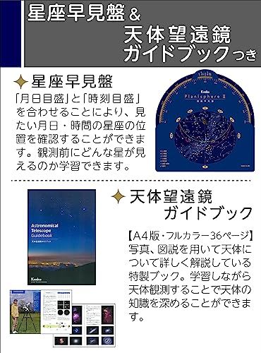 【天体への知識を深めながら観測を楽しもう!】望遠鏡に必要な付属品のほか、より知識が深まる天体ガイドブックや星座早見盤が付属。お子さまの学習にもぴったり。