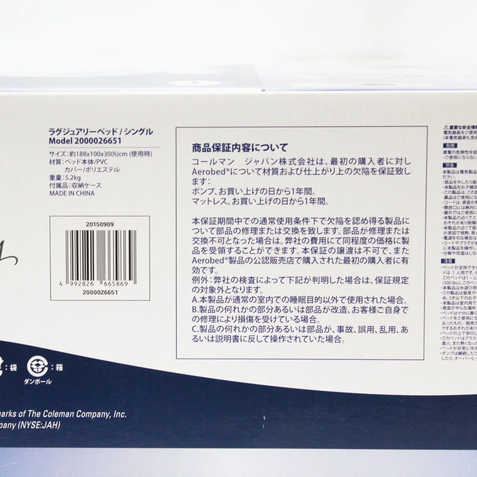 コールマンのラグジュアリーコレクション、エアロベッド、ラグジュアリーシングルベッドです。