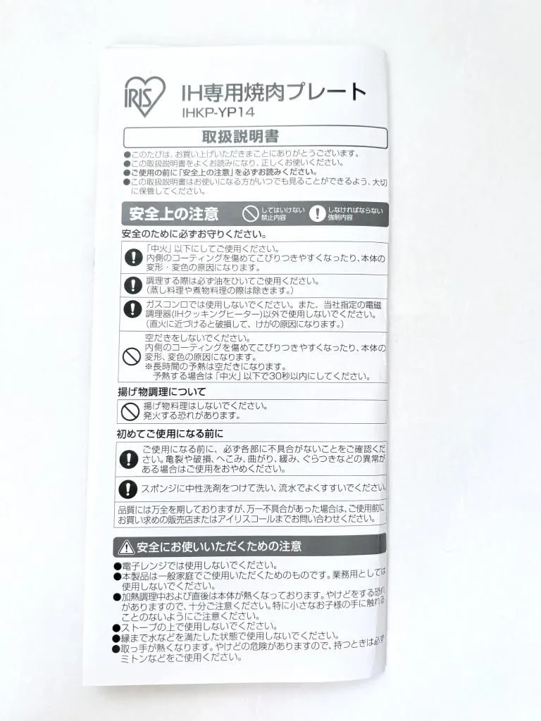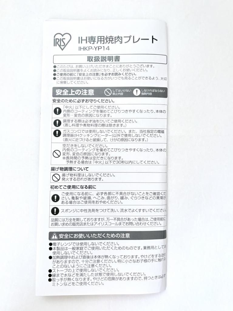 アイリスオーヤマのIHクッキングヒーター専用、焼肉プレートです。
