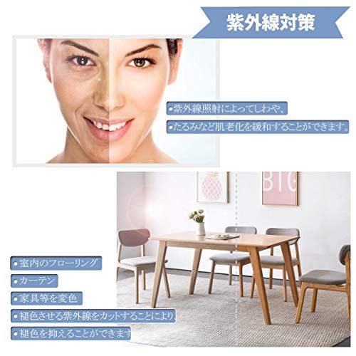 【紫外線遮断機能】ガラスを通して室内に入る大量の有害な紫外線を大幅カットできますし、眩しい直射日光を和らげて肌を刺すようなジリジリ感などの不快を抜き取り、快適な室内空間を演出します。またローリングや畳、カーペットなどの床材、家具の紫外線による日焼け、変色、劣化も軽減できる効果があります。