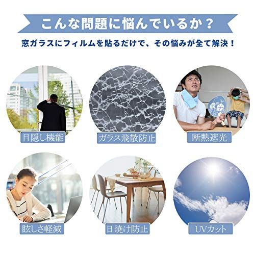 【適用ガラスタイプ】全ての滑らかな表面(凹凸がない)ガラスに適用です。木材、タイルやすりガラスなど粗い表面と多孔性表面のガラスに適用しません。ペアガラス(二重ガラス)と網入りガラスみたいの構造でも、表面が平ら(ツイツル)でしたら、綺麗に貼れますので、ご安心ください。但し、長年直射日光を多く受ける地域(赤道地域等)、 ワイヤー・網入りガラス、複層(ペア)ガラス等に射熱吸収率の高い