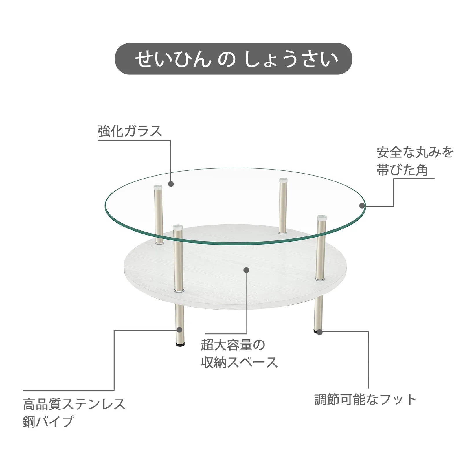 【安全設計】強化ガラスのエッジ部分は丁寧に研磨加工されており、安全性に配慮しています。安心して使用できます。