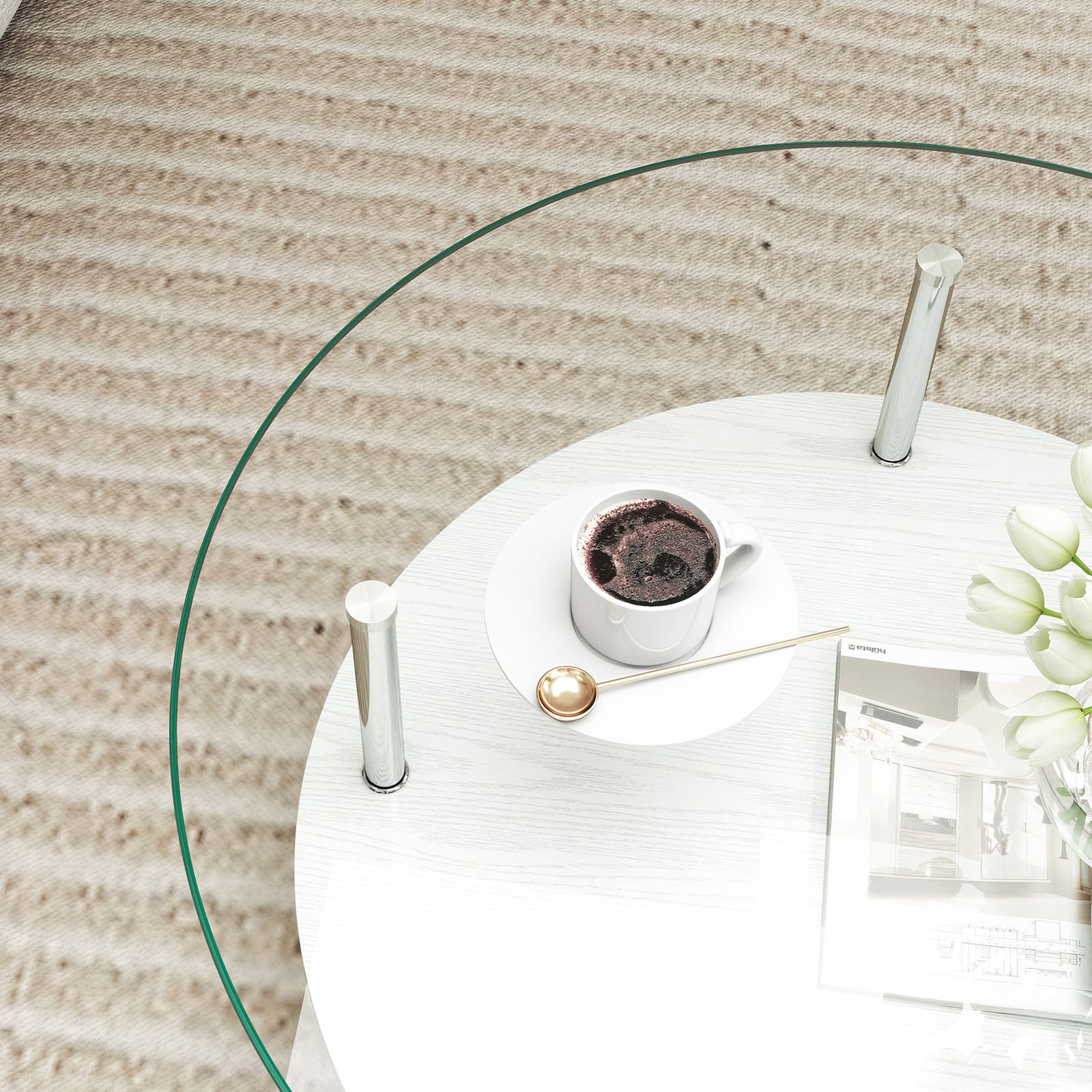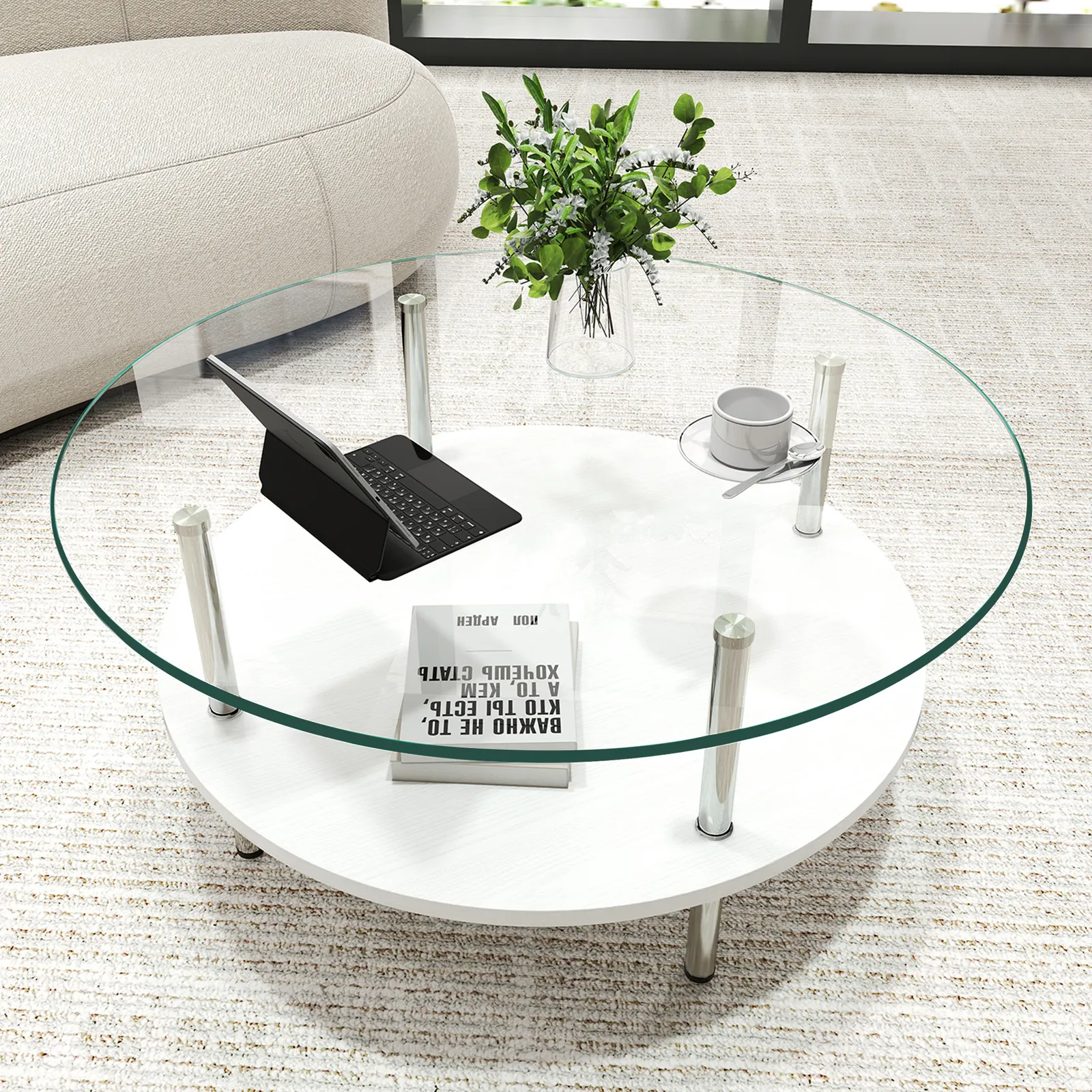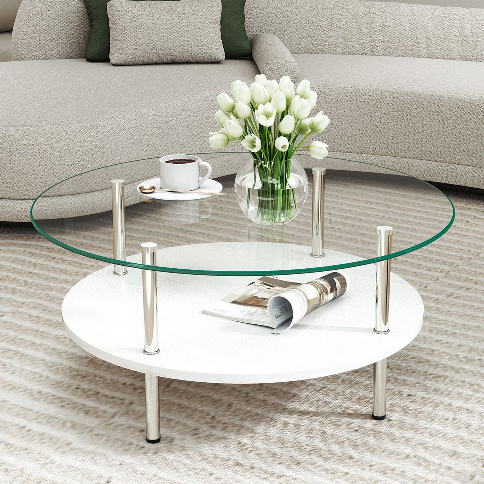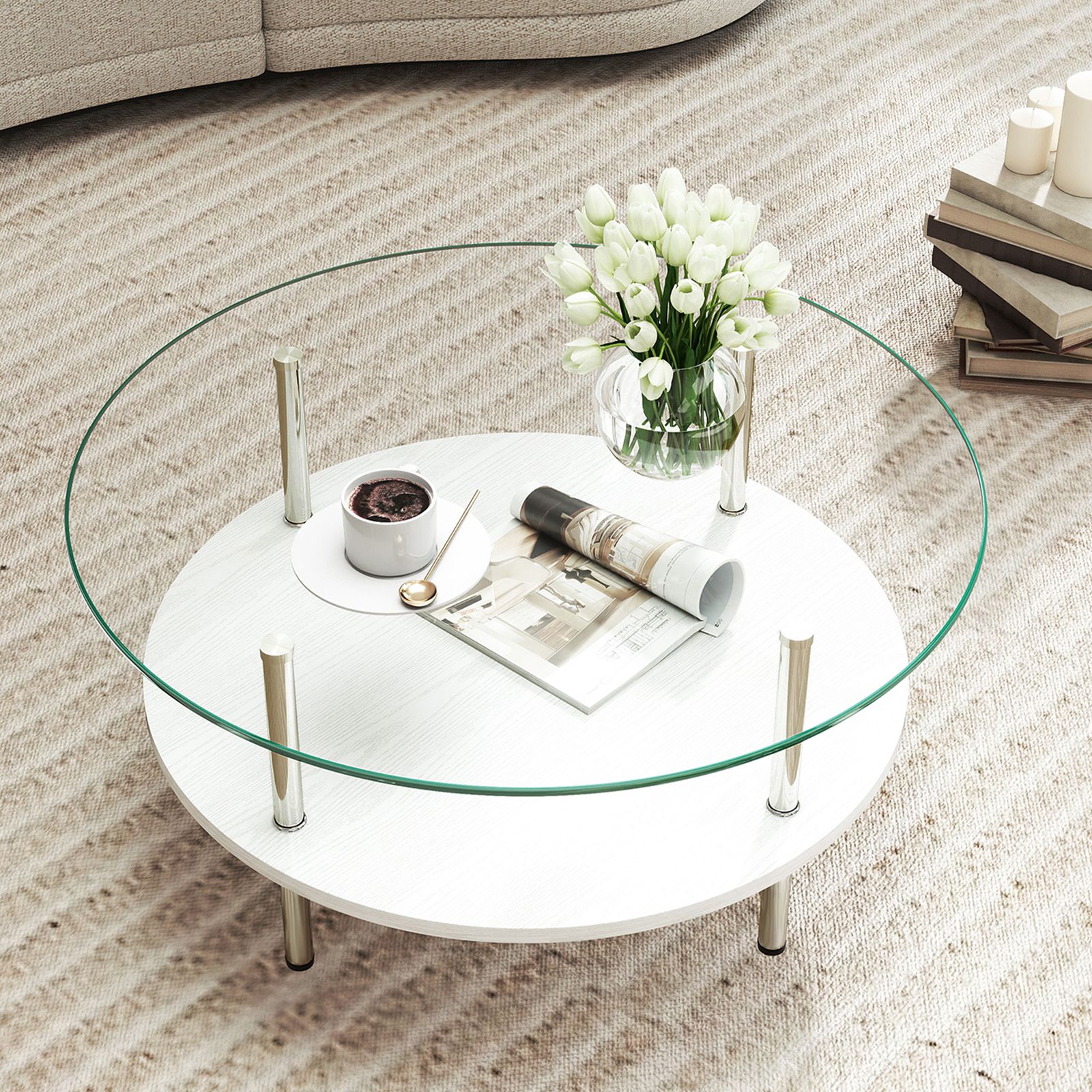 【大容量2段収納】便利な2段構造で、上段には日用品、下段には雑誌やリモコンなどをすっきり収納できます。リビングをいつも整った状態に保ち、スマートで快適な空間を作ります。