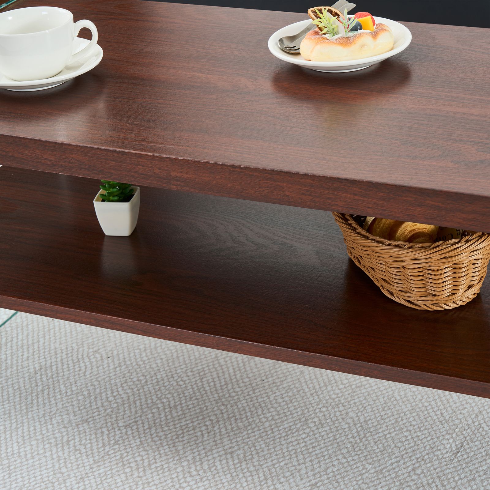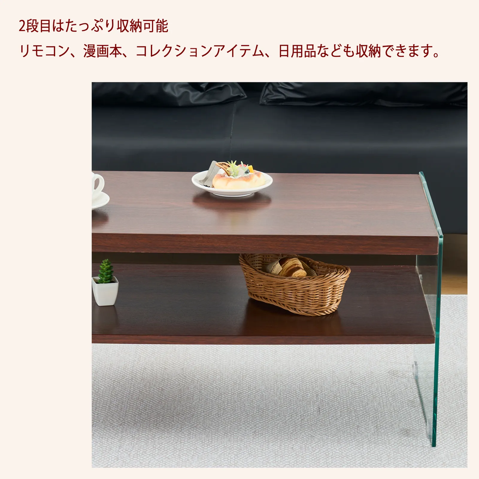 【実用的な収納スペース】2段構造で、雑誌や書籍、装飾品を収納できる便利なスペースを提供しながら、開放感を保ちます。