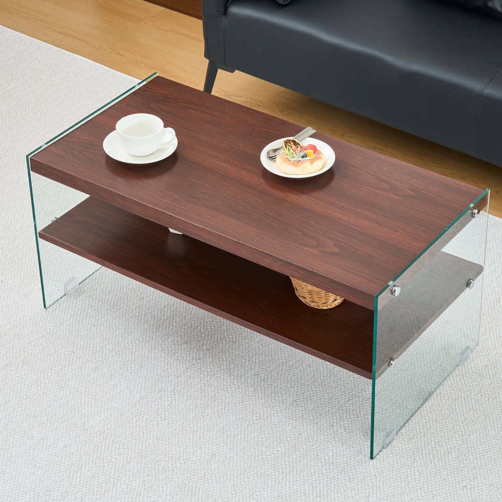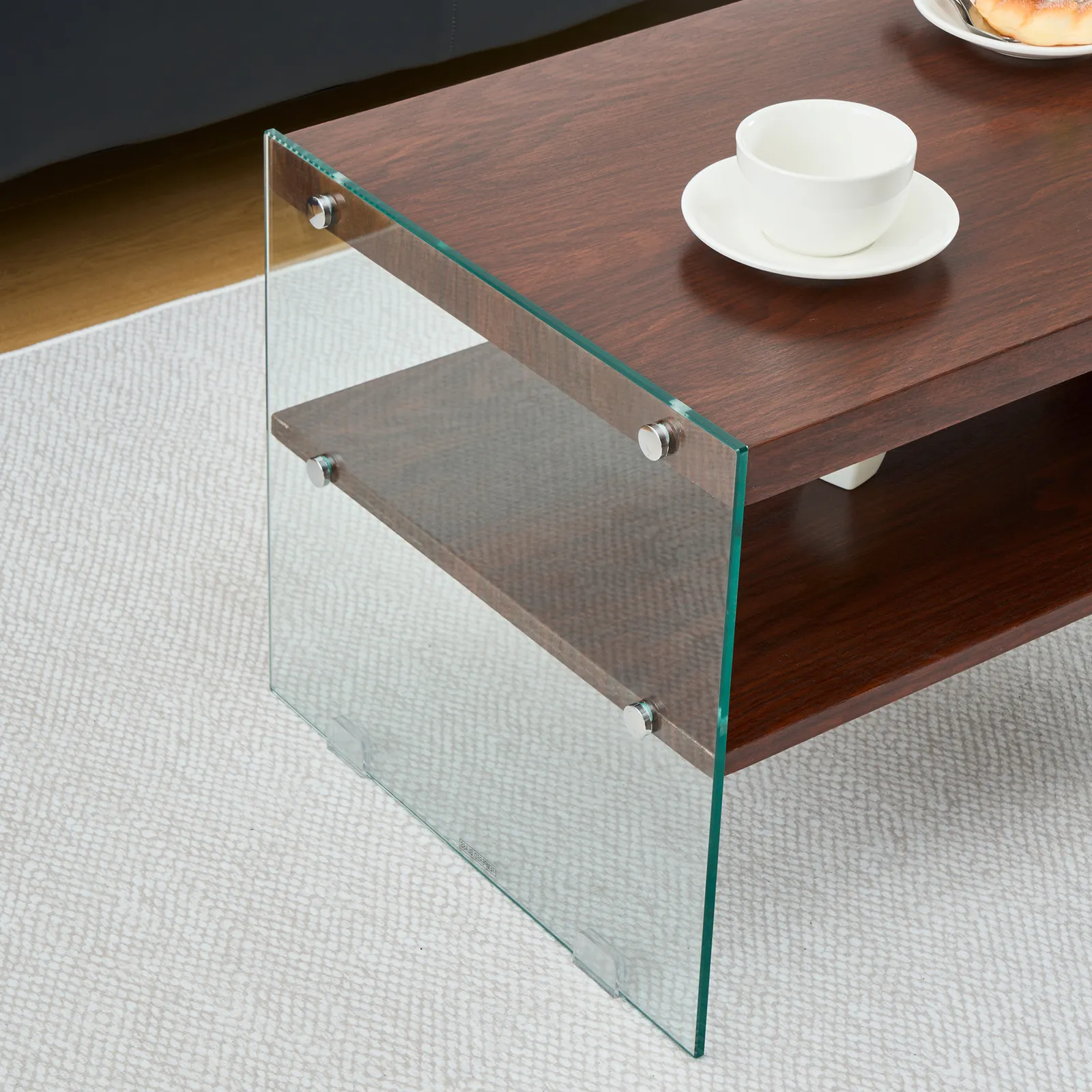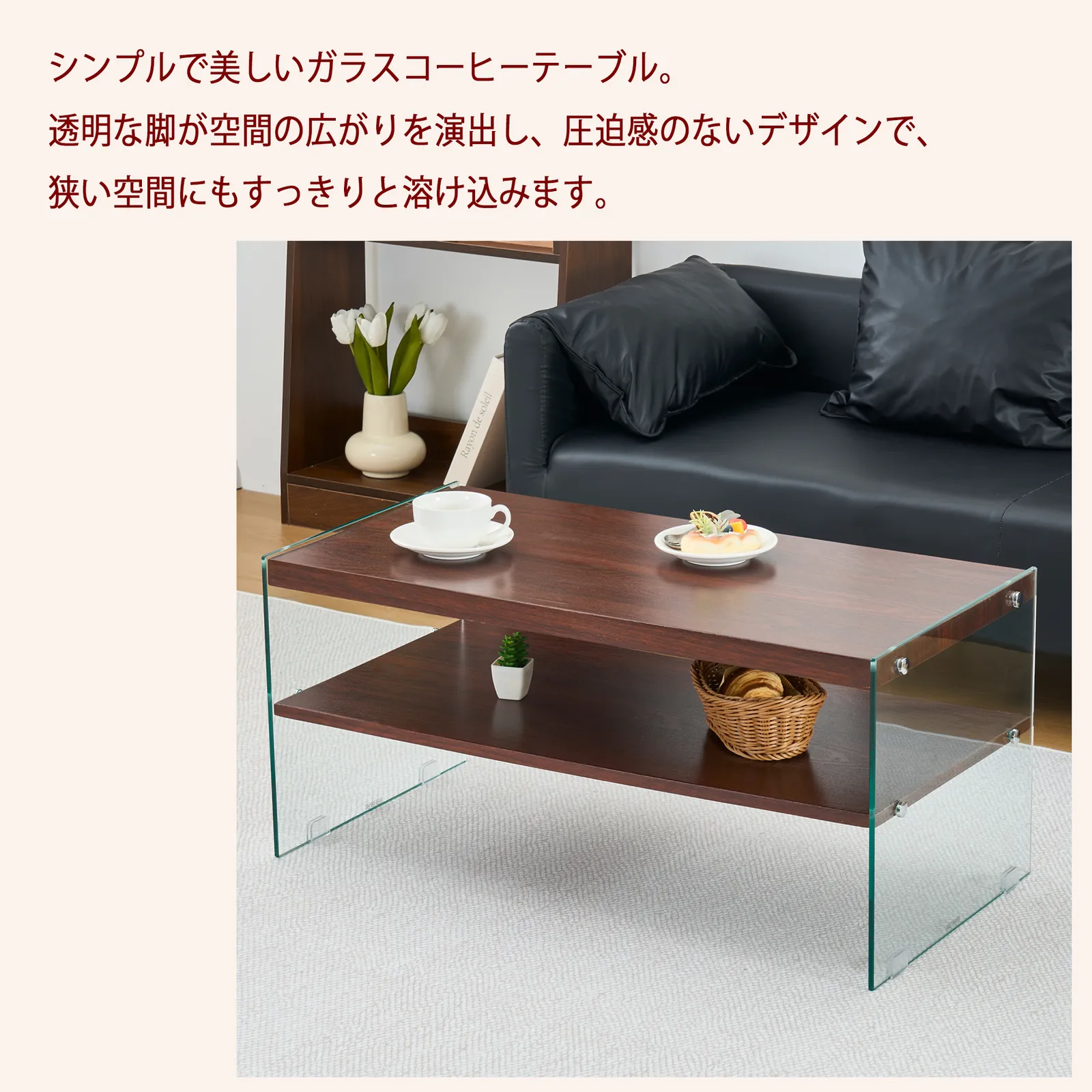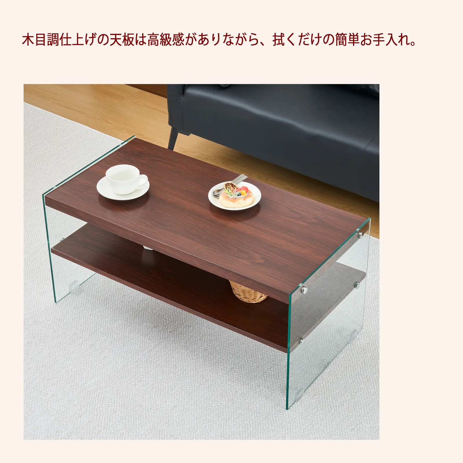 【モダンデザイン】高品質強化ガラス側板とMDF天板を採用し、ミニマルな外観を保ちながら、現代的な美しさを追求しました。