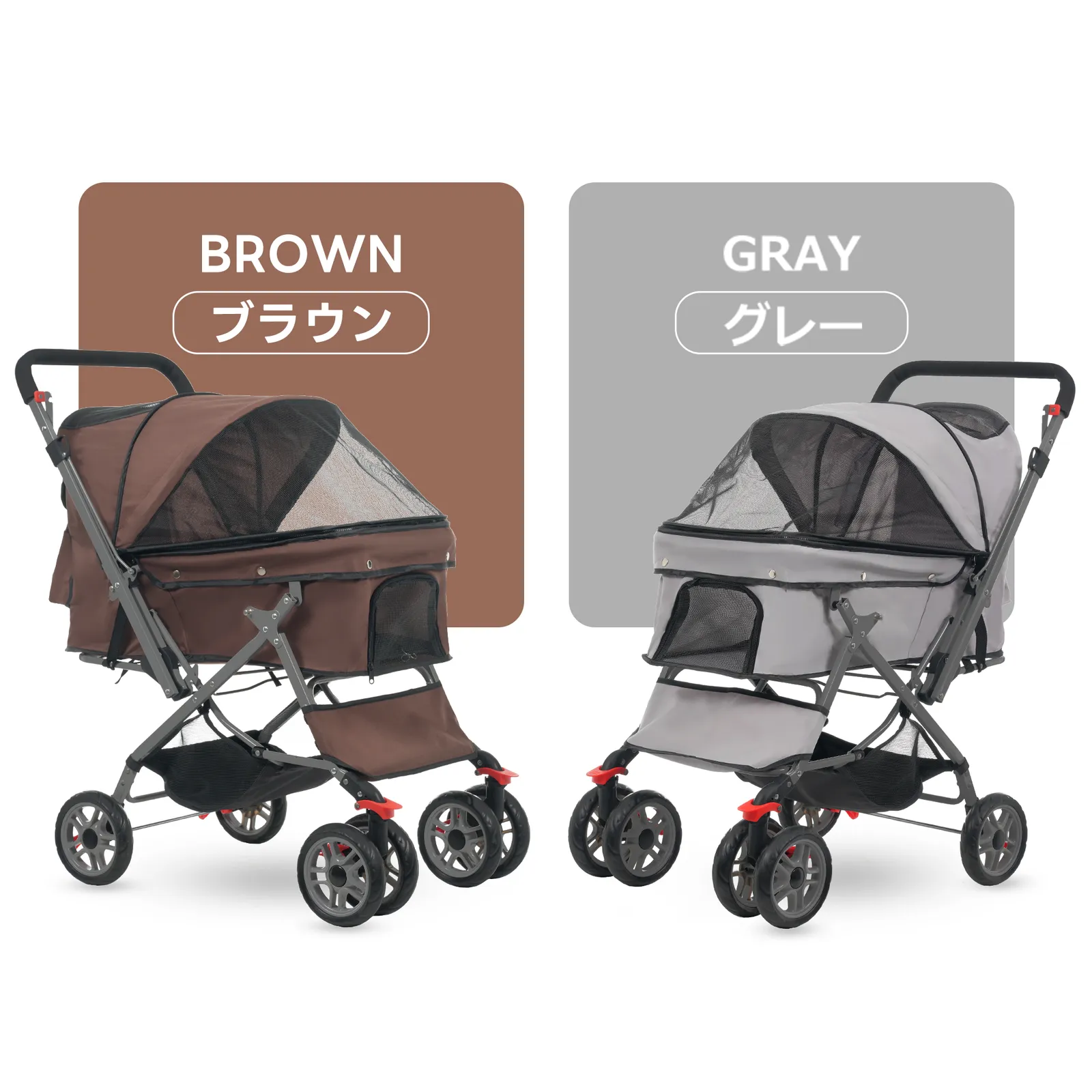 新入荷|ペットカート 対面式 折りたたみ 多頭 中型犬 小型犬 猫 2way 軽量 組立簡単 工具不要 介護用 ドッグカート ペットバギー 犬 猫 動物 ペット用品 【ブラウン】 【ブラウン】