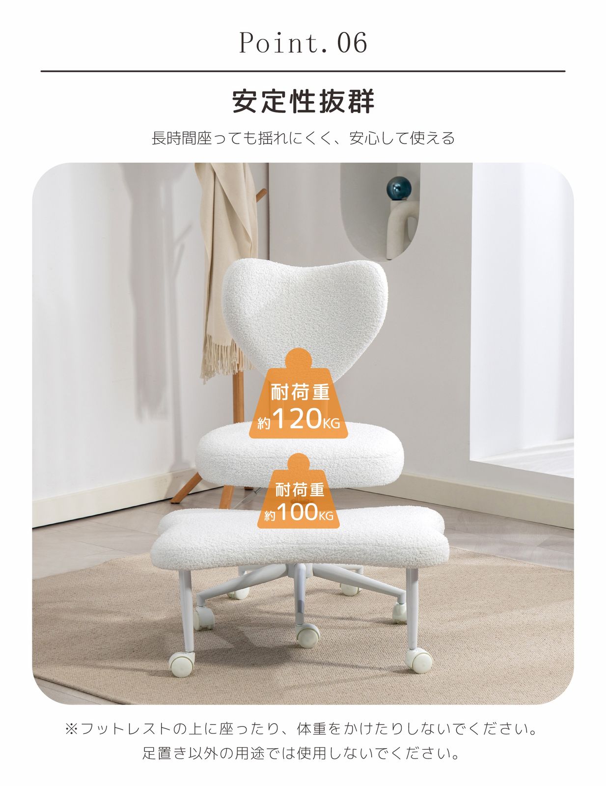 【安定性抜群】安定性抜群で、長時間座っても揺れにくく、安心してお使いいただけます。