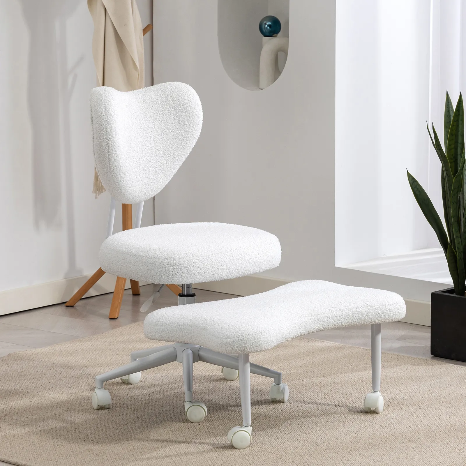数量限定|ベロア モンキーチェア テレワーク推薦 異形デザイン フットレスト付き 背もたれ付き 多機能スツール キャスター付き 丸椅子 椅子 瞑想 ヨガ 昇降スツール 回転椅子 あぐら椅子 チェア 正座椅子 座椅子 回転 カウンターチェア 360度回転 組立簡