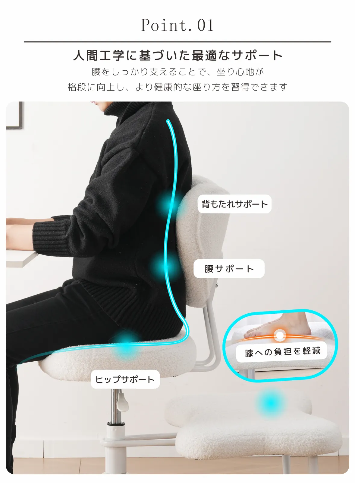 【座り心地を進化】従来の座り方では味わえなかった快適さを実現。体にやさしく、長時間座っても疲れにくい。座るたびに、新しい快適さを実感できます。