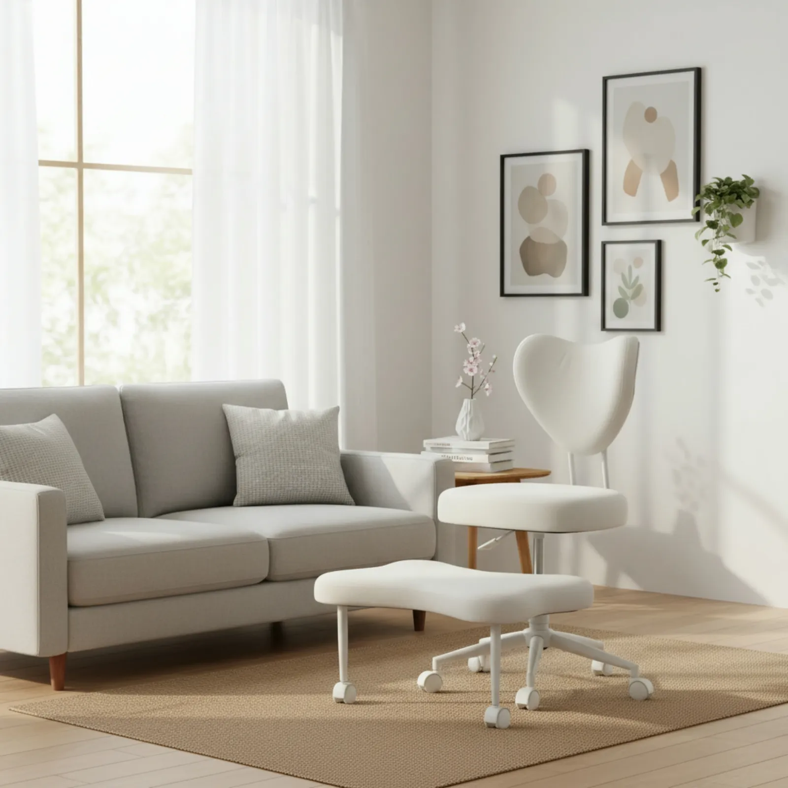 【自分らしい座り方で、毎日を快適に】体にフィットするカーブ背もたれと安定構造で、ヨガ・読書・くつろぎタイムを快適にサポートするマルチチェア