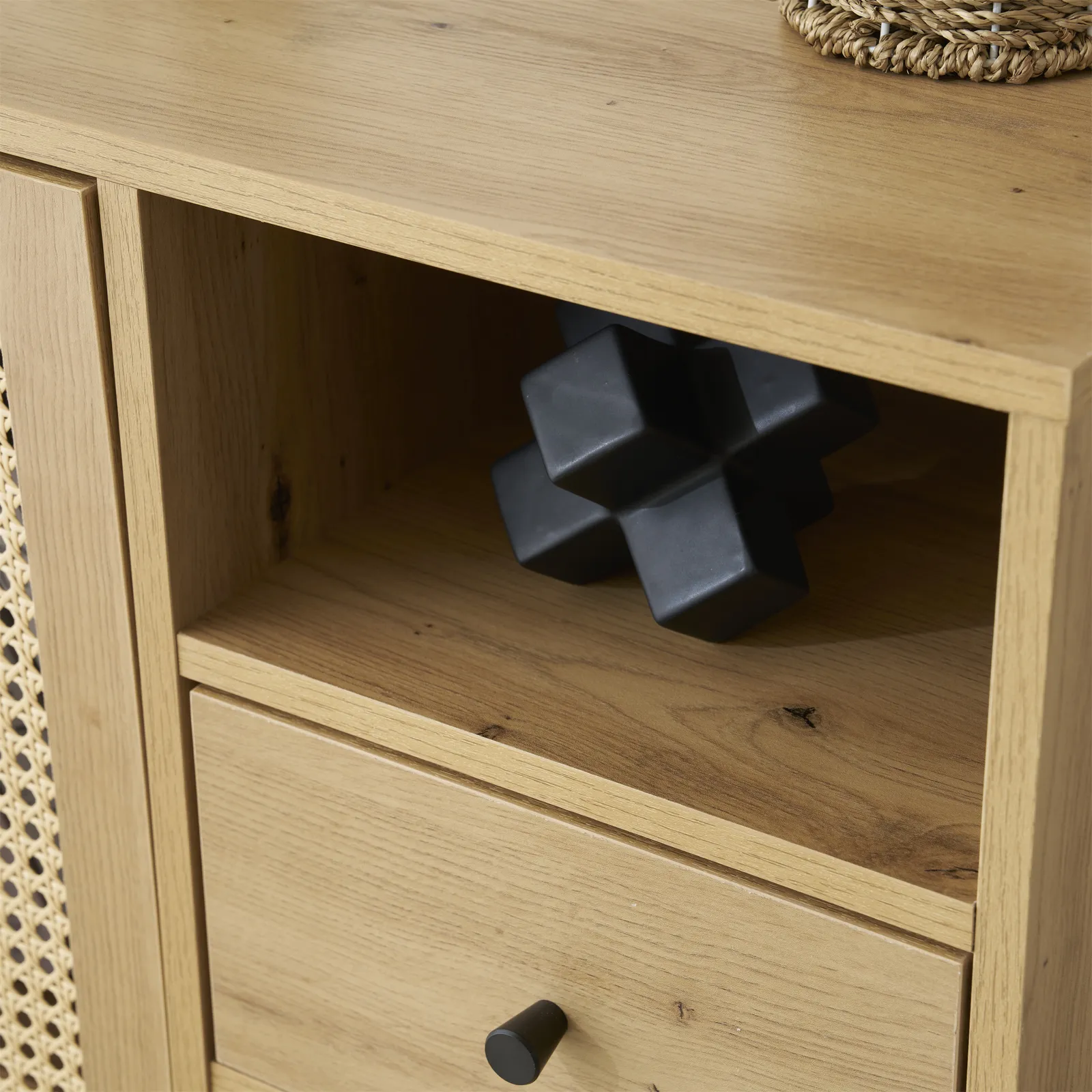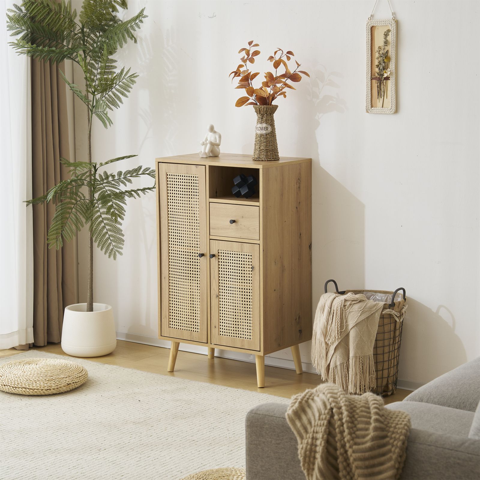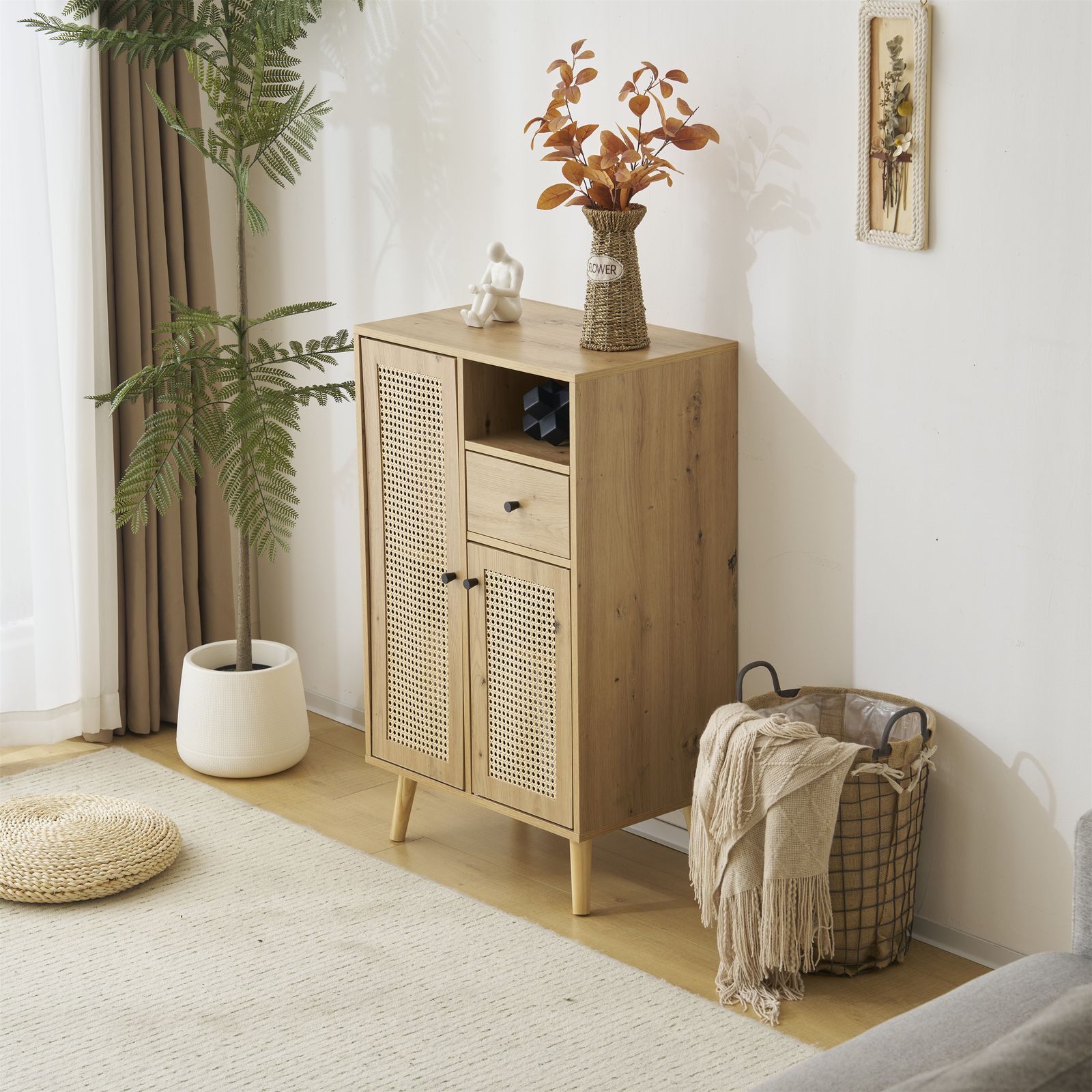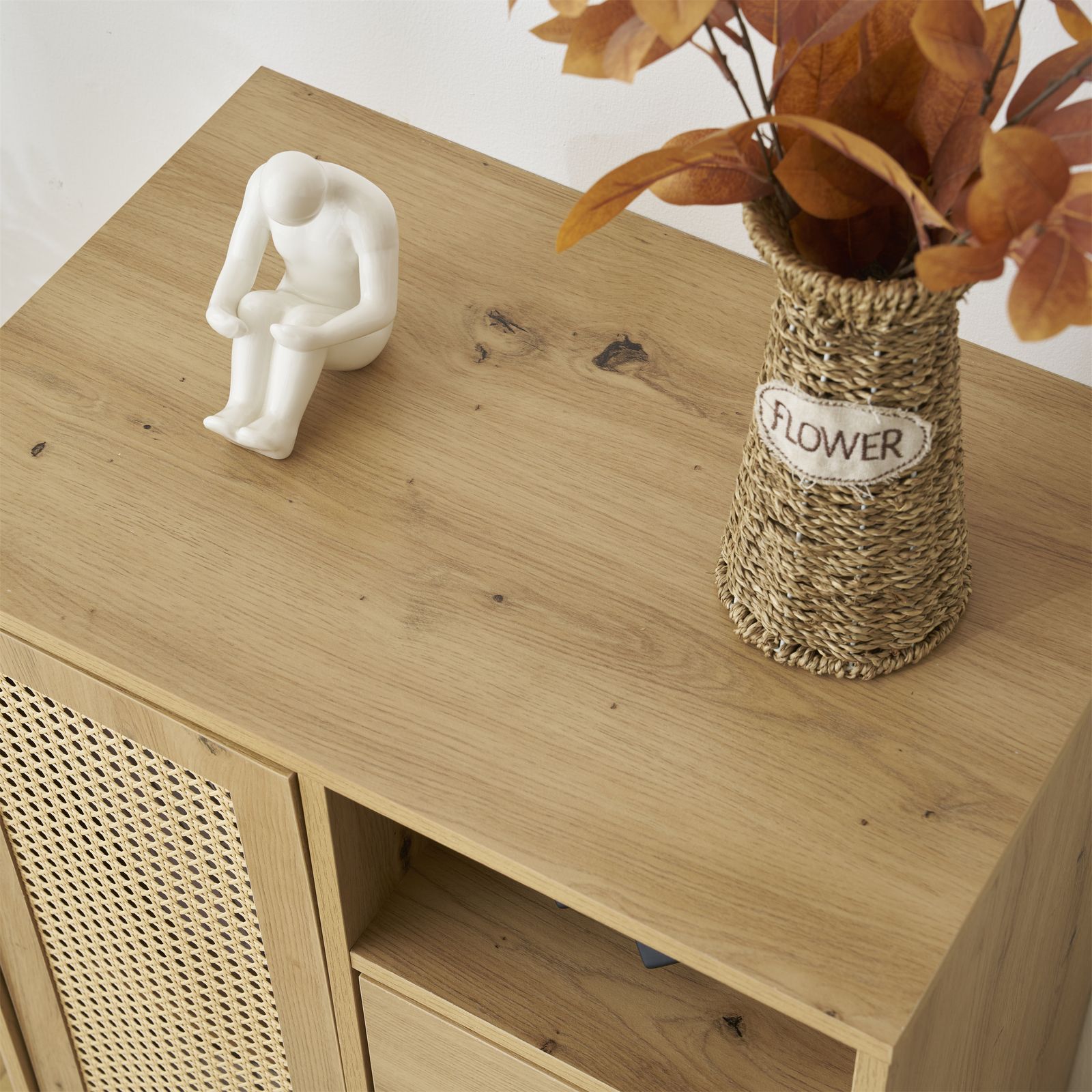 【おしゃれなラタン調デザイン】ラタンは繊細なかごめ編みを採用しており、圧迫感や重さが少ないのが特徴です。扉で隠し生活感のない洗練された雰囲気を演出、置くだけでセンスのあるお部屋に。目隠しと通気性を両立したラタン調の扉はポリエチレン素材を使用、お手入れも楽になりました。