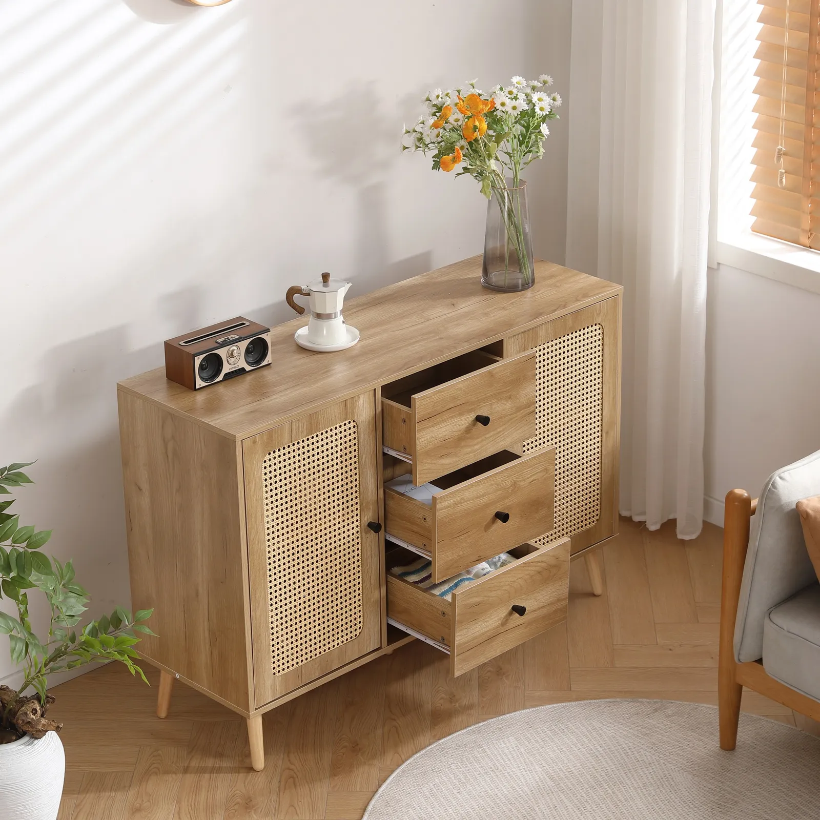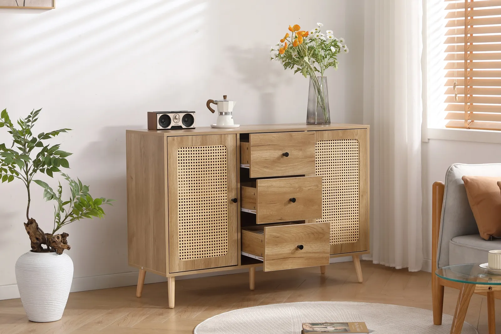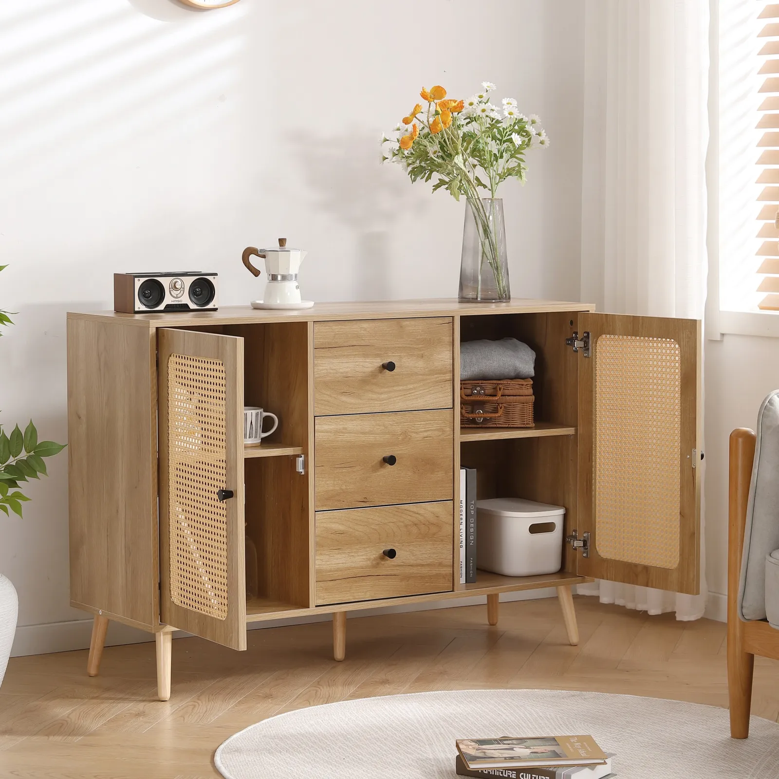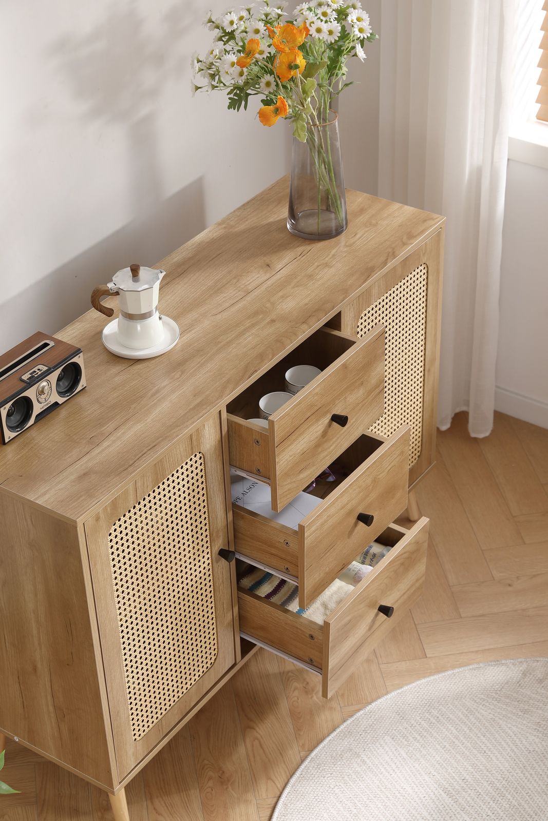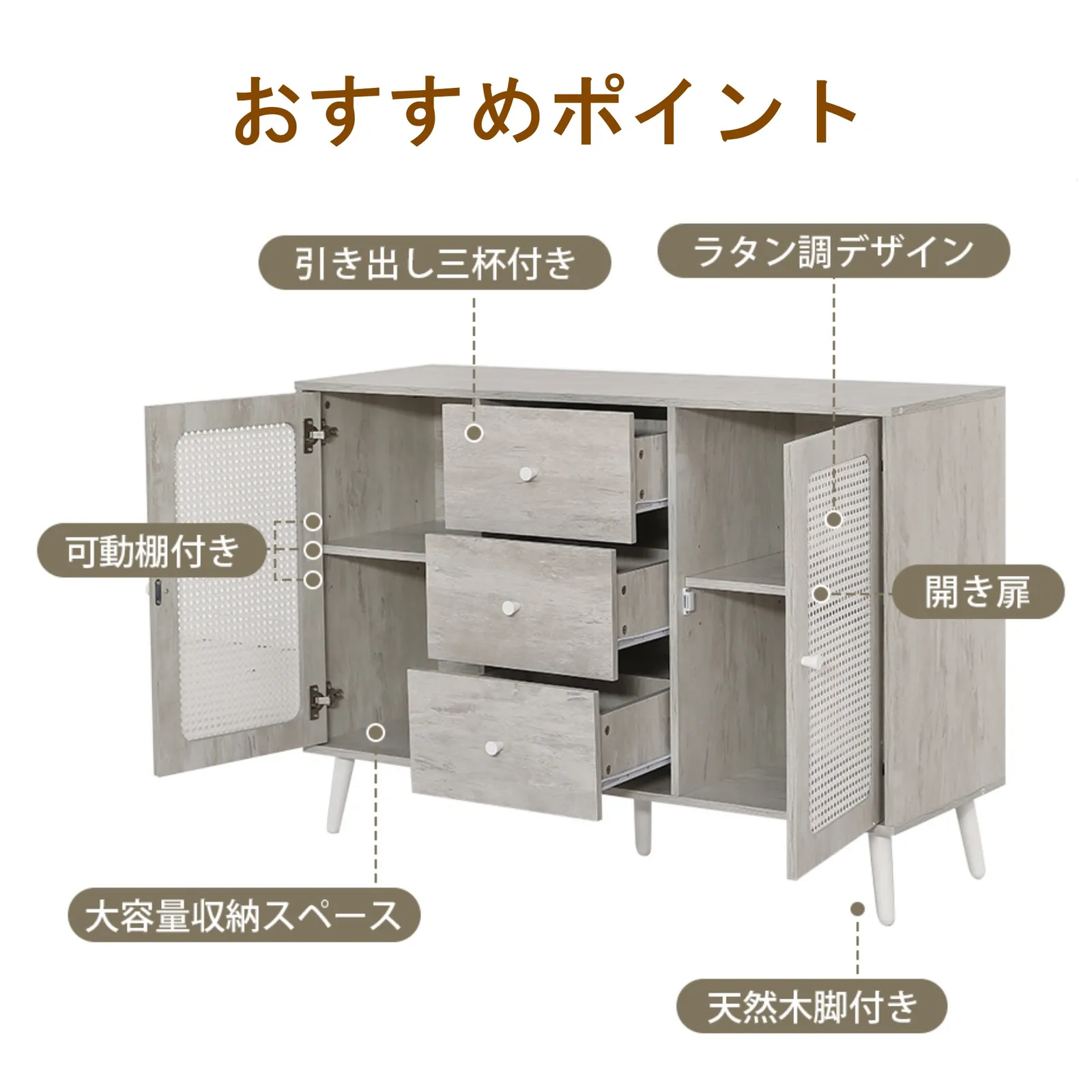 ・使いやすさとおしゃれを両立するキャビネット/サイドボード、スペースを最大限に利用できます。