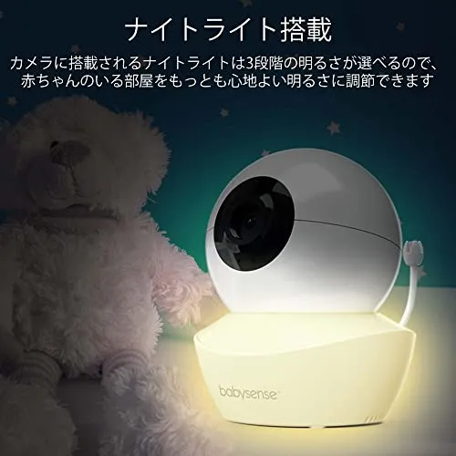 カメラにナイトライトと温度センサーが搭載され、遠隔で上下左右に可動、ズームコントロールができ、部屋全体を見ることができます。