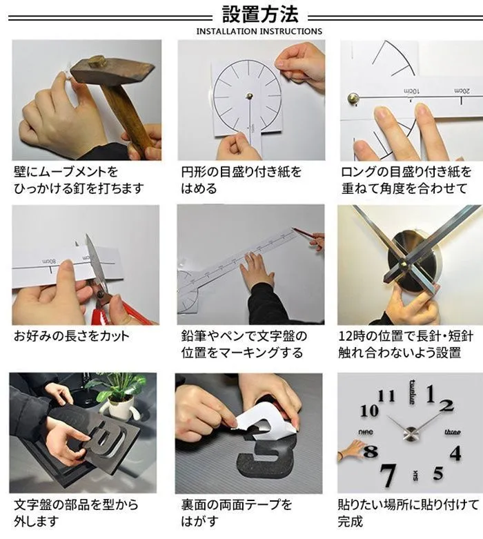 DIY ウォールクロック 壁時計 ウォールアート 子供部屋 文字 ステッカー ブラック モダン クロック 壁に貼れる 時計 壁に貼る 北欧 時計 貼る時計 壁 シール デコレーション 店舗 壁紙 オフィス 壁掛け時計 DIY ビッグウォールクロック