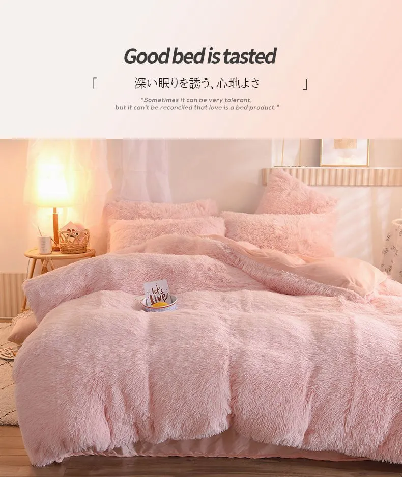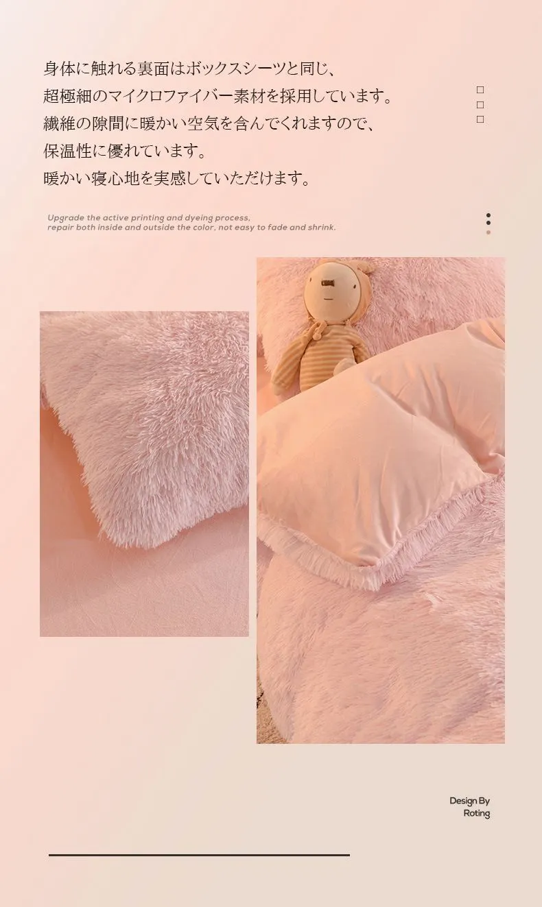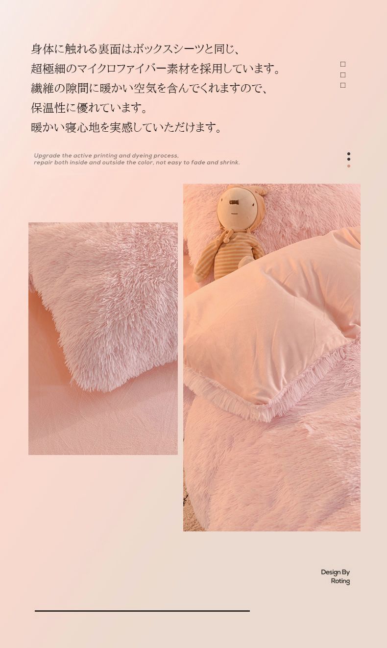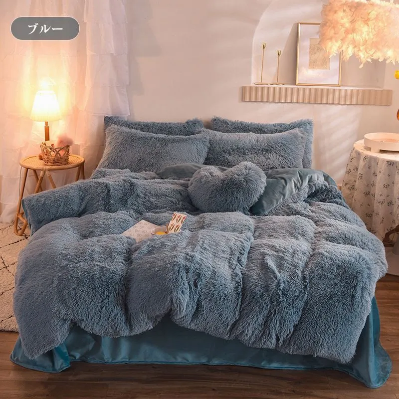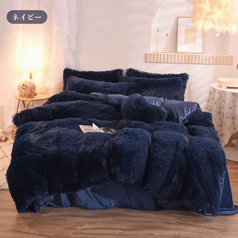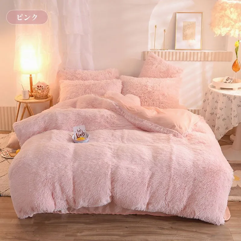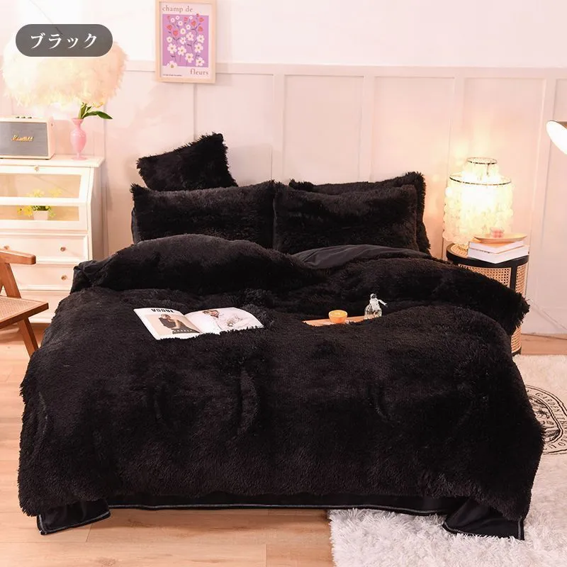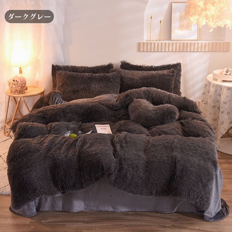 毛足の長い布団カバー 寝具カバーセット 4点セット ダブル 枕カバー 掛け布団カバー ふわふわ 暖かい 可愛い 秋冬 保温 厚手 フラットシーツ 布団カバーセット あったか おしゃれ 柔らかい 肌触りいい 北欧