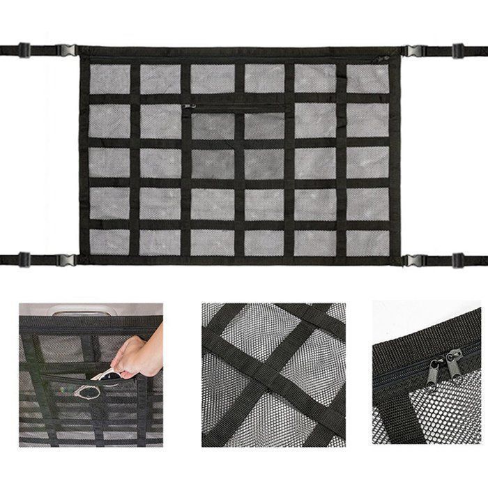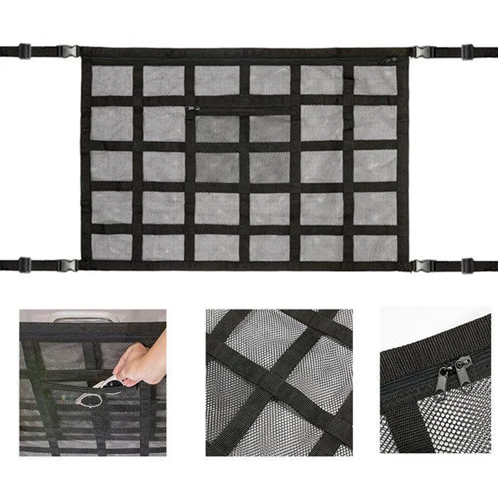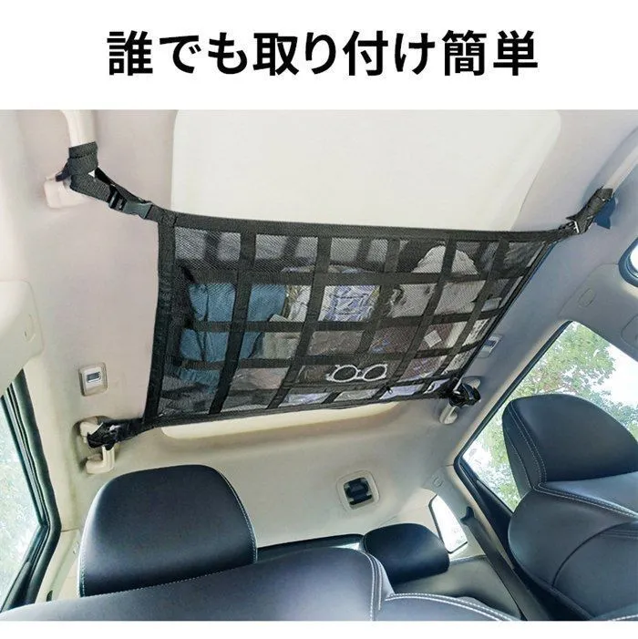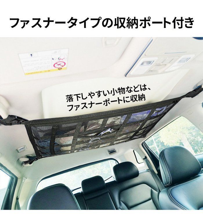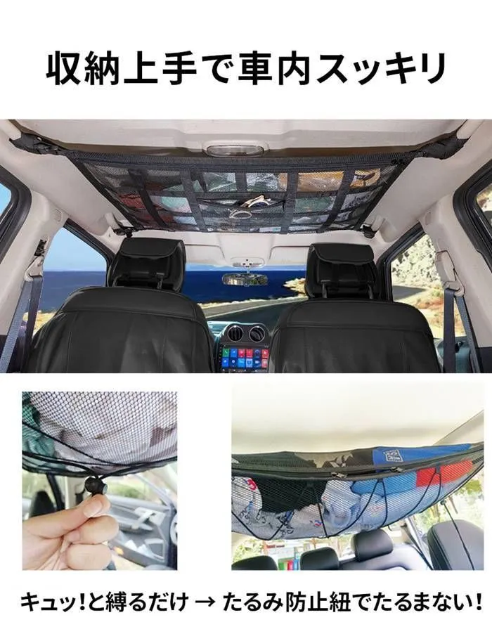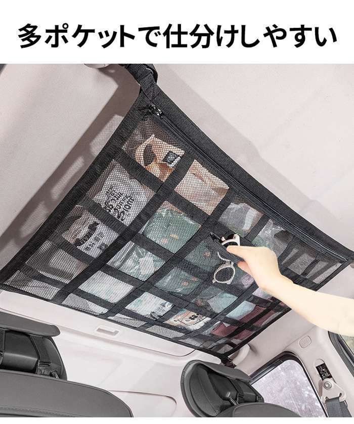 車用天井収納ネット 車 収納 天井 ネット アイディア ファスナー付き キャンプ 車中泊 ミニバン SUV 荷物 ルーフネット 車内