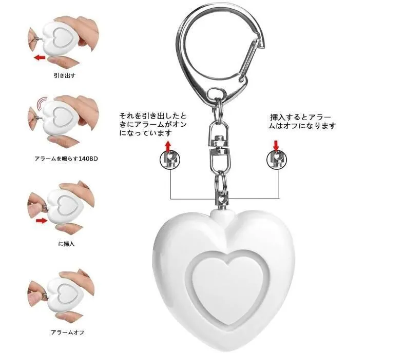 防犯ブザー ハート型 ハート形 防犯アラーム 大音量 130db 防犯アラーム 小型LEDライト付き 子供 女性 女の子 小学生 ランドセル 誘拐防止 不審者対策meinuo01