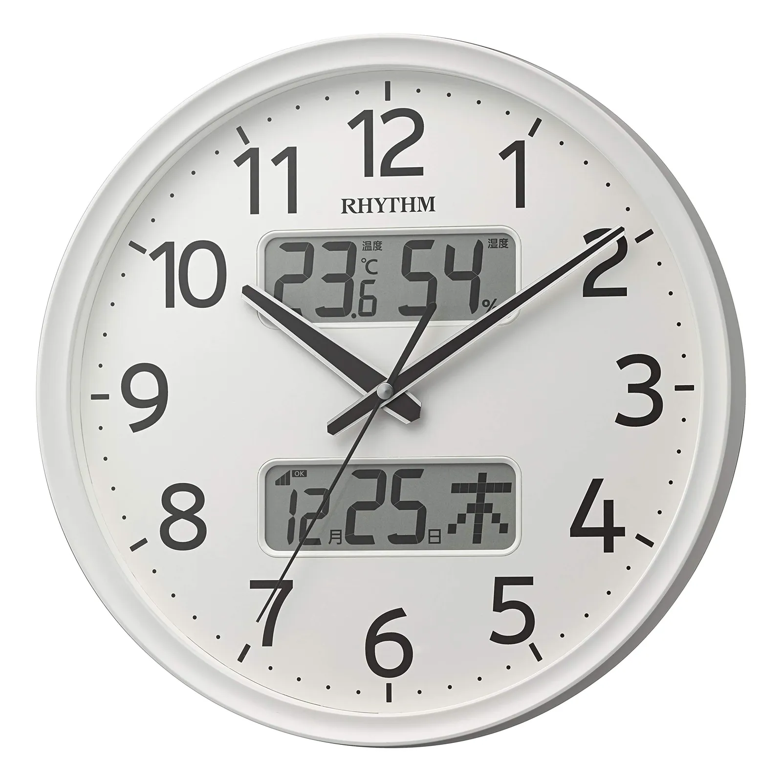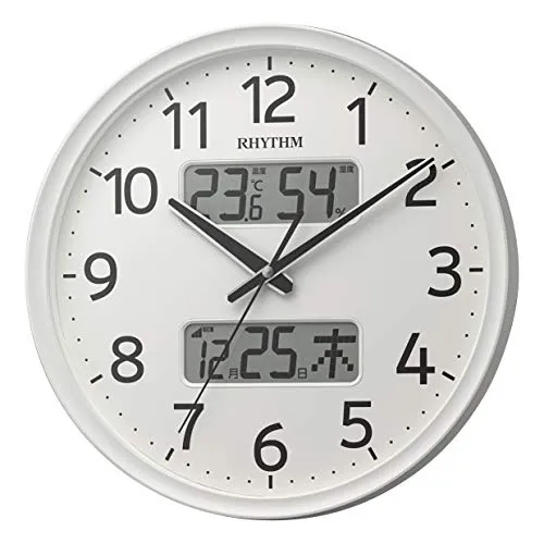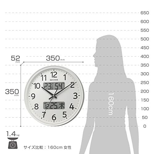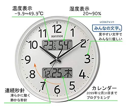 リズム(RHYTHM) 掛け時計 電波時計 アナログ 連続秒針 温度 湿度 カレンダー 白 Φ35x5.3cm 8FYA03SR03t