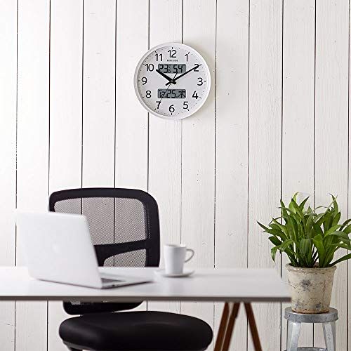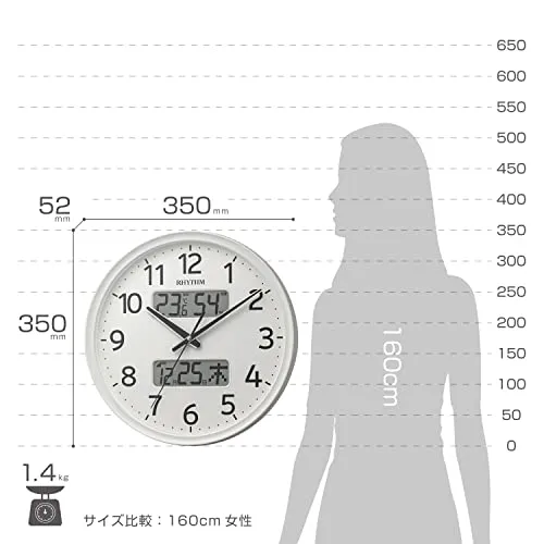 ご覧いただきありがとうございます 即購入OK! 丁寧な梱包・発送でお届けいたします。 よろしくお願い致します サイズ:Φ353.5cm、本体質量:1.4kg 使用電源:単3アルカリ2本(別売) 秒針:連続秒針(滑らかに動いて静か) ムーブメント:電波時計 温度表示:-9.949.9、湿度表示:2090%、カレンダー:2099年12月31日までプログラム