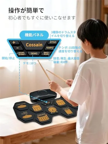 音量 10 段階・テンポ 15 段階調整可自分のレベルに合わせて練習、初心者もスムーズに上達。録音再生最大 410 件記録可練習の進捗をリアルタイム記録 ドラム上達の軌跡が一目で分かる