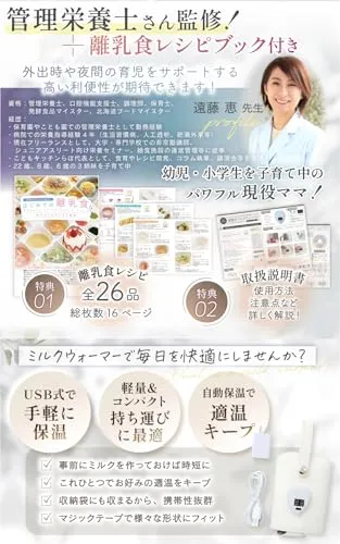 Liscia ミルクウォーマー 哺乳瓶ウォーマー 【管理栄養士監修】 ボトルウォーマー 哺乳瓶 ミルク 保温 温め 持ち運び USB 給電式 【26品目掲載の離乳食レシピ付き】 (バニラオレ)t