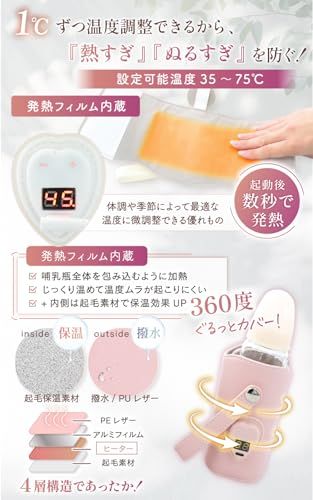 【使いやすい-かんたん操作】ボタンひとつで温度設定・加温・保温が簡単に操作可能。分かりやすいデジタル表示で、暗い部屋でも見やすく安心です。初めての方でも直感的に扱えるシンプル設計。忙しいママ・パパでも片手で操作でき、授乳のリズムを崩さずスムーズに使えます。