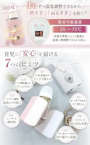 Liscia ミルクウォーマー 哺乳瓶ウォーマー 【管理栄養士監修】 ボトルウォーマー 哺乳瓶 ミルク 保温 温め 持ち運び USB 給電式【26品目掲載の離乳食レシピ付き】 (グリーンティ)t