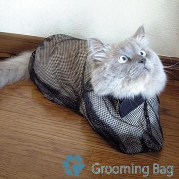ネコちゃんのシャンプー時やお手入れ時に便利。予防注射の時などに大暴れするネコちゃんをネットでガードしてお手入れをしやすくなります。