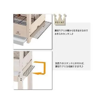 前面に引出しがついており、底アミはサイドから引き出せて糞やフードの食べ残しも楽に処理できます。