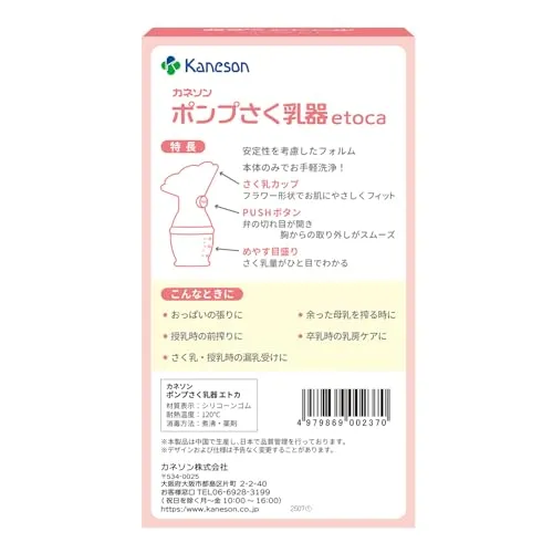 乳首にも使用されるシリコーンゴム素材。部品が無く本体1点のみですので、手間のかかる組立の必要がありません。部品破損、紛失による交換が不要なので故障もありません。さく乳器のカップ部分はフラワー形状でお肌にやさしくフィットし、手軽にさく乳。使用後の消毒は、煮沸または市販の薬剤につけるだけ。 めやす目盛付きなので、さく乳量がひと目でわかります。PUSHボタンで胸からの取り外しがスムーズ。さく乳中に強い痛みを感じたときは、PUSHボタンを使用すると弁の切れ目が開き瞬時に無圧となり、吸引圧が抜けます。おっぱいに張りがあるとき、授乳時の前搾り、漏乳受け、卒乳時の乳房ケアにと様々な場面でご使用いただけます。コンパクトで持ち運びに便利なので、カバンに入れて外出先でもお手軽、簡単にさく乳ができます。