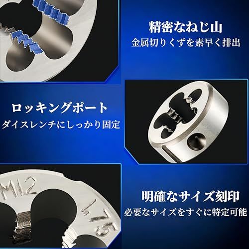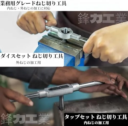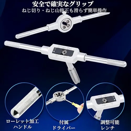 【使いやすい設計】タップレンチやダイストックレンチは調整可能で操作しやすく、初心者でも簡単にネジ切り・修正作業が可能。付属のネジピッチゲージで正確なサイズ確認ができ、作業効率を大幅に向上させます。