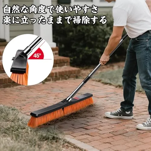 楽に掃除:このデッキブラシは、109cmから142cmに調整可能な長いハンドルが付いています。ブラシヘッドと地面は45度の角度をなしており、清潔な時に直立姿勢を保ち、腰痛にさよならできるようにしましょう。