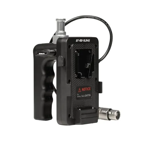 BT-BG-XLR4IIは、手持ちでもライトスタンドに取り付けても使用可能な4ピンXLRコネクター付きのVマウントバッテリーグリップです。本製品を使用することで、FC-120BやFC-120C、Forza 150BがVマウント駆動可能になります。