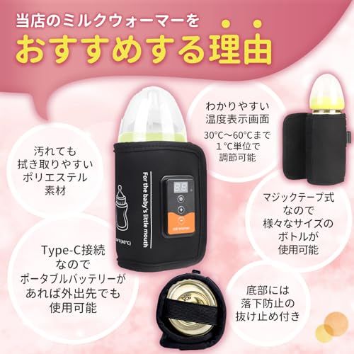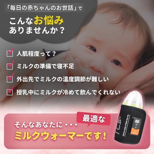 【ポータブルで多機能な育児サポート】 家庭内はもちろん、外出先や移動中でもミルクを適温にキープ。 USB給電でどこでも使えるため、急なミルクウォームの必要にも迅速に対応でき、育児シーンをしっかりサポートします。