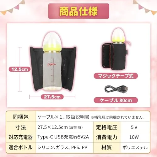 【USB Type?C対応でいつでもどこでも】 USB Type?C規格に対応しており、スマートフォンやモバイル電源など様々なUSBポートから簡単に充電可能。 コンパクトな作りで外出先やお出かけ時にも手軽にミルクを温められます。