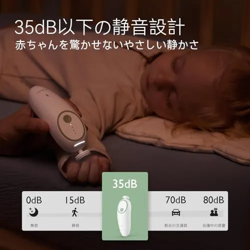 やさしいライト付き ? 360ソフトLEDライトを搭載しており、死角のないやわらかな光で、夜間の赤ちゃんのネイルケアにも最適です。まぶしさを抑え、赤ちゃんの目にもやさしい設計になっています。