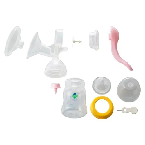 製品サイズ:W150D100H200mm 重さ:234g 材質:本体・シャフト・ハンドルポリプロピレン、シリコンポンプシリコーンゴム 付属品:さく乳カップ、カバーM、乳首(Yカット/広口用)、キャップ(広口用)、フード(広口用)、お手入れビン