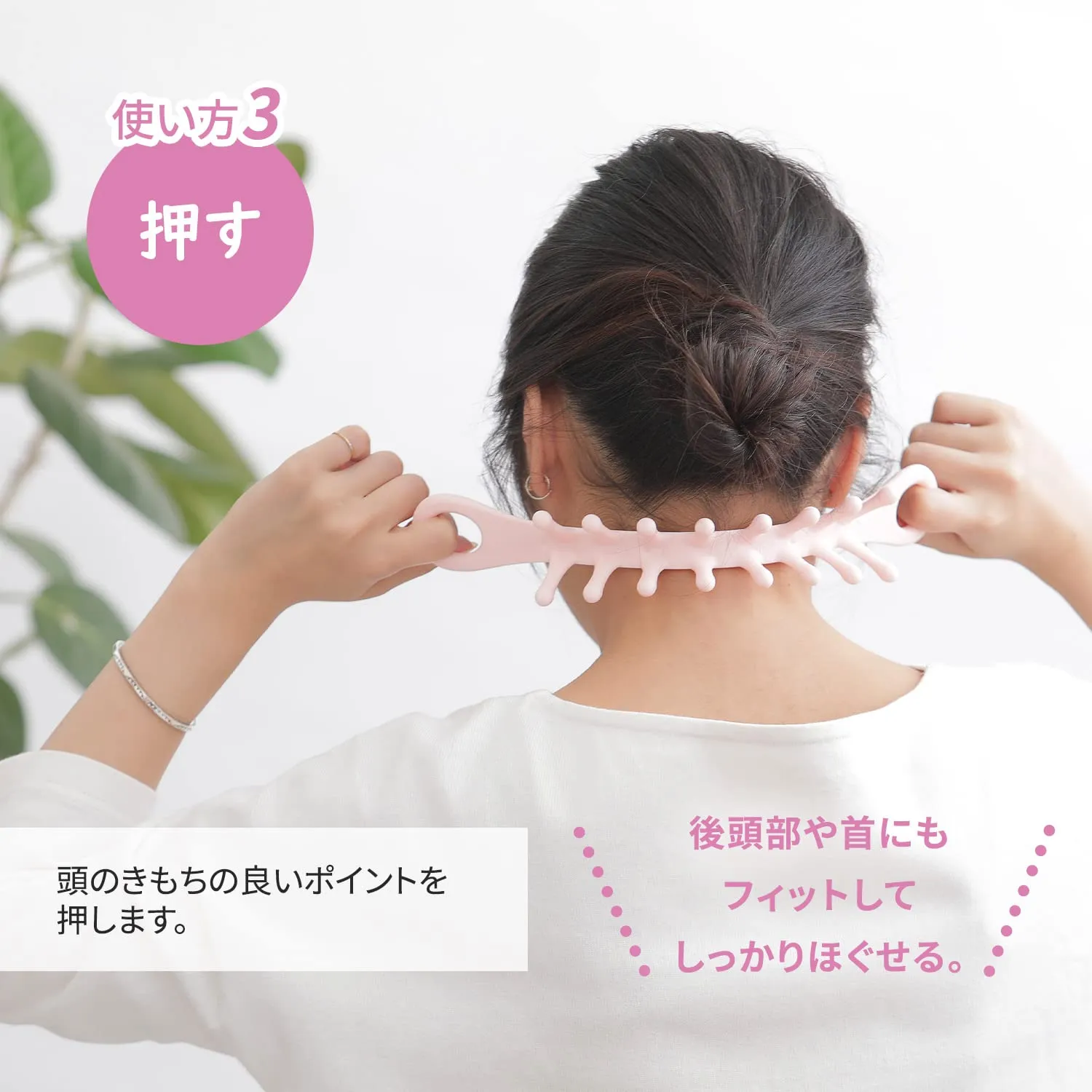 【頭をすっきりマッサージ】2種類の突起で「揉む」「流す」「押す」ができて、コリをほぐせるツールです。