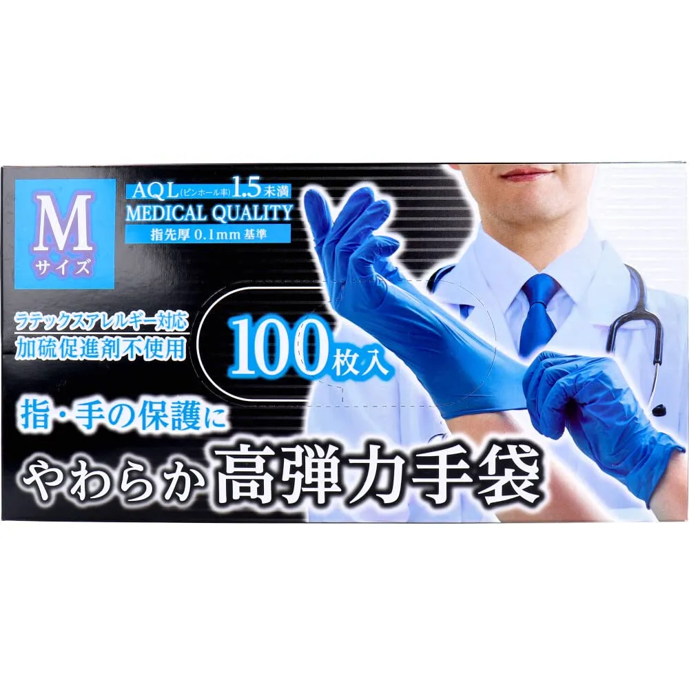 [金石衛材] やわらか高弾力手袋 ビニール素材 ノンパウダー Mサイズ 100枚入