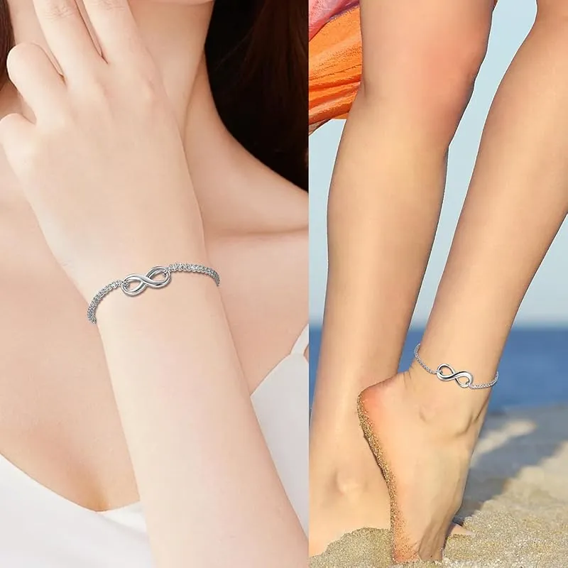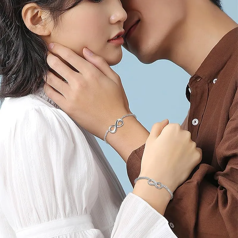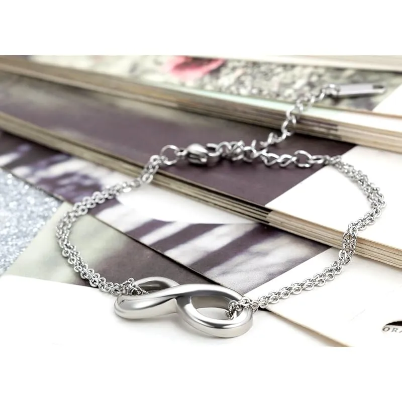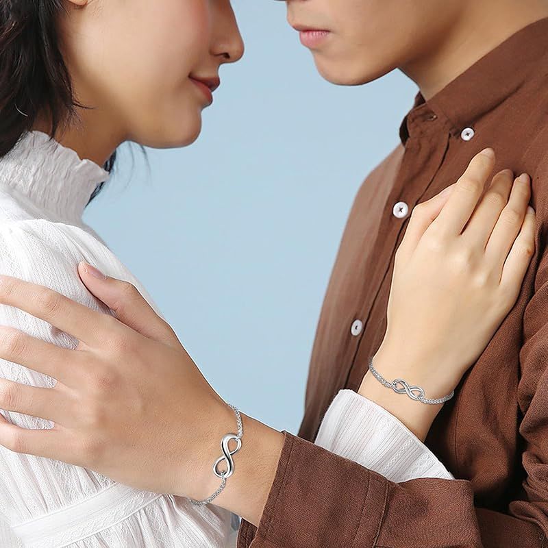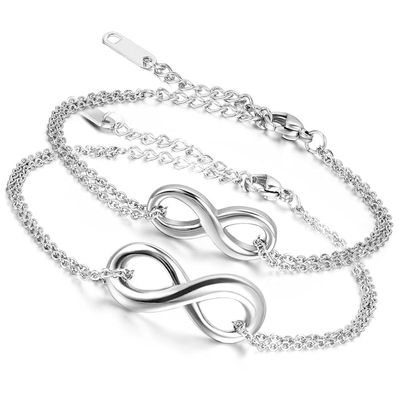 【新品】 カップル ブレスレット お揃い ステンレス アンクレット: 無限大 8字 シルバー 愛の証 レディース バングル 手脚も適合 シンプル ジュエリー 可愛い クリスマス バレンタインデー-プレゼント 誕生日 記念日 2個セット ケース付き