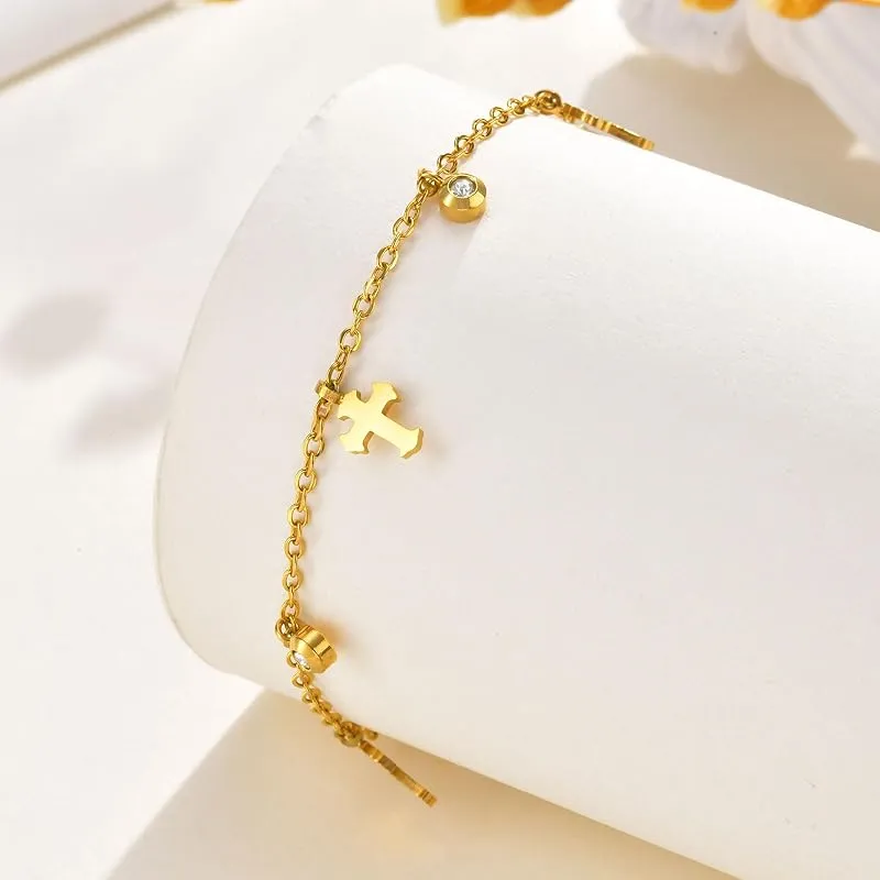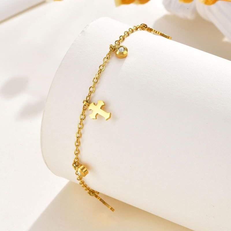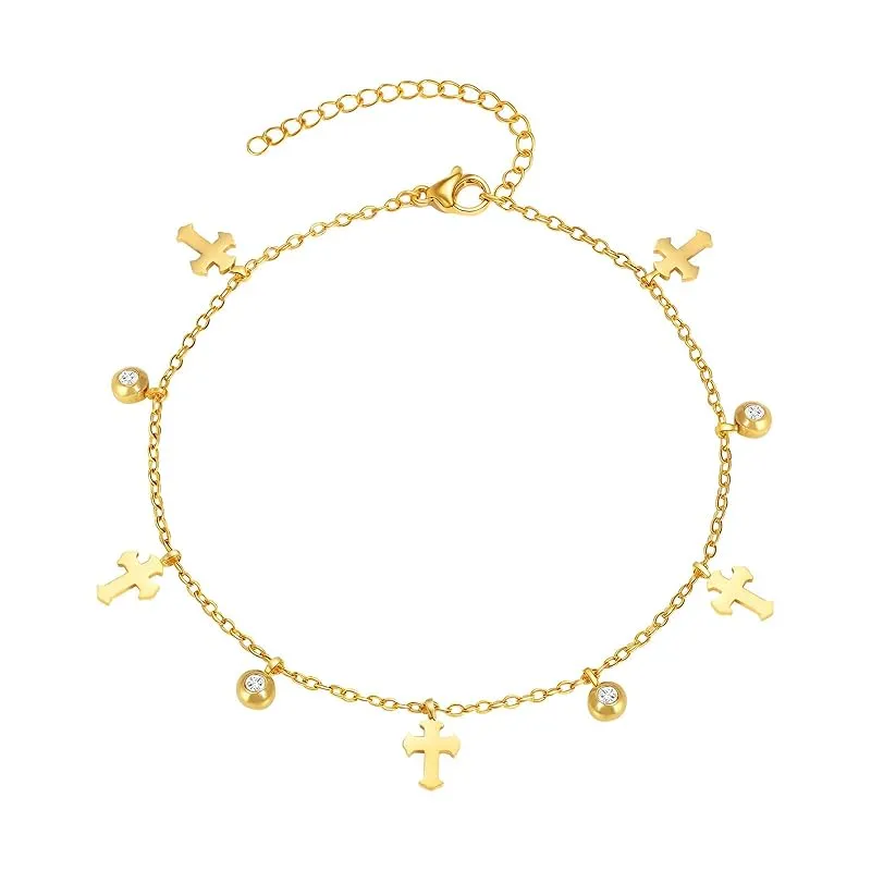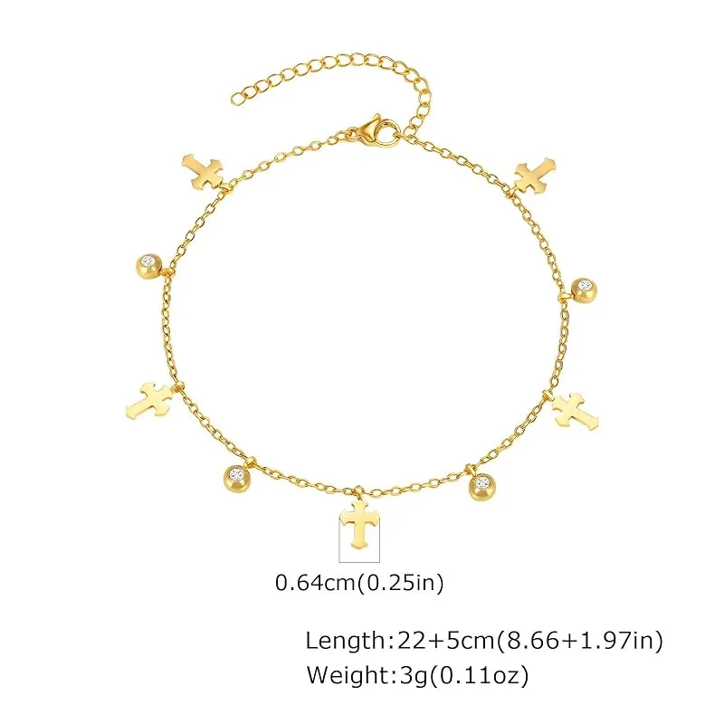 【新品】 アンクレット レディース ステンレス アンクレット チェーン ゴールド キュービックジルコニア 幾何モチーフ サイズ調節可能 金属アレルギー対応 足首用 夏 クリスマス (太十字架)