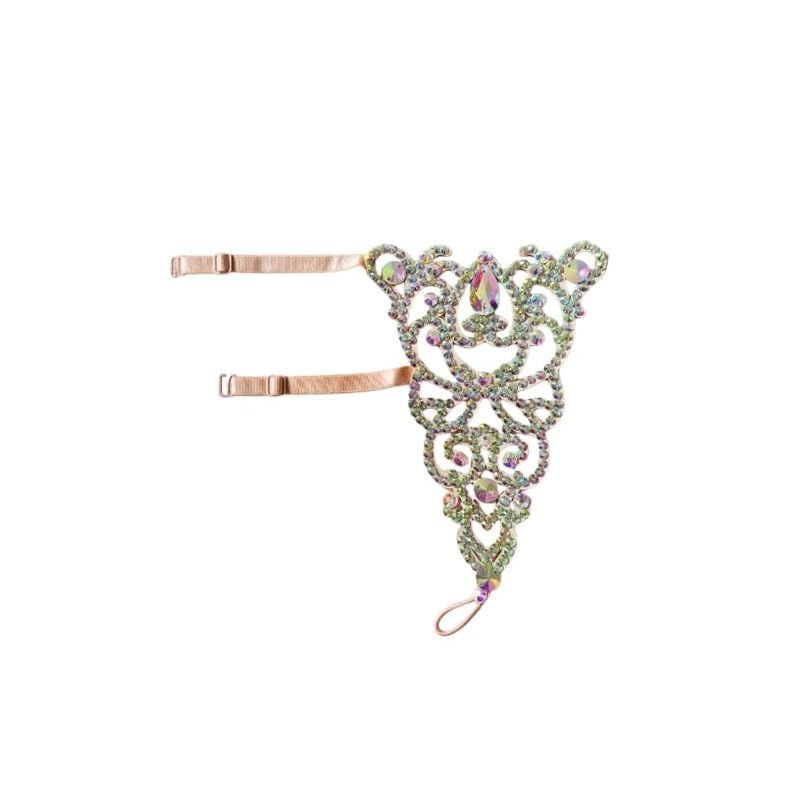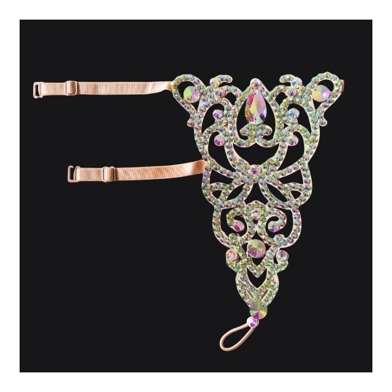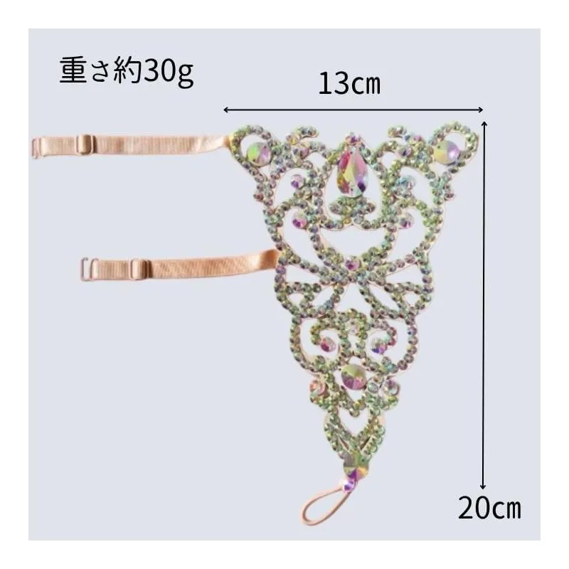 光の加減で虹色に輝くオーロラストーンをふんだんに使用したアクセサリー。足元を華やかに彩り、ステージで存在感を発揮します。