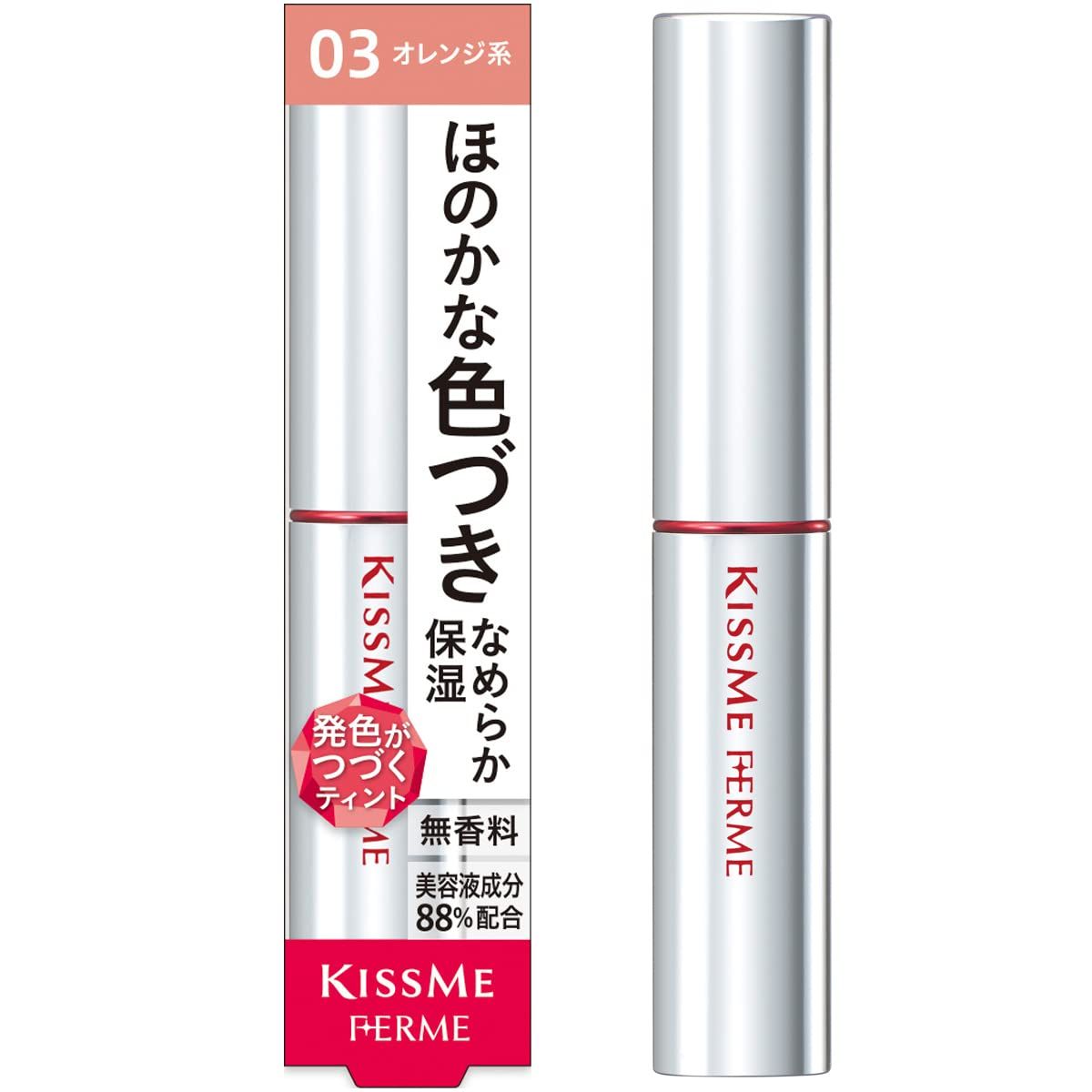 Kiss Me FERME(キスミーフェルム) リップカラー&ベース 03 オレンジ系 2.2g 1本4役(くすみカバー・口紅下地・色つきリップ・高保湿) ティントタイプ 色つきリップクリーム [03 オレンジ系]