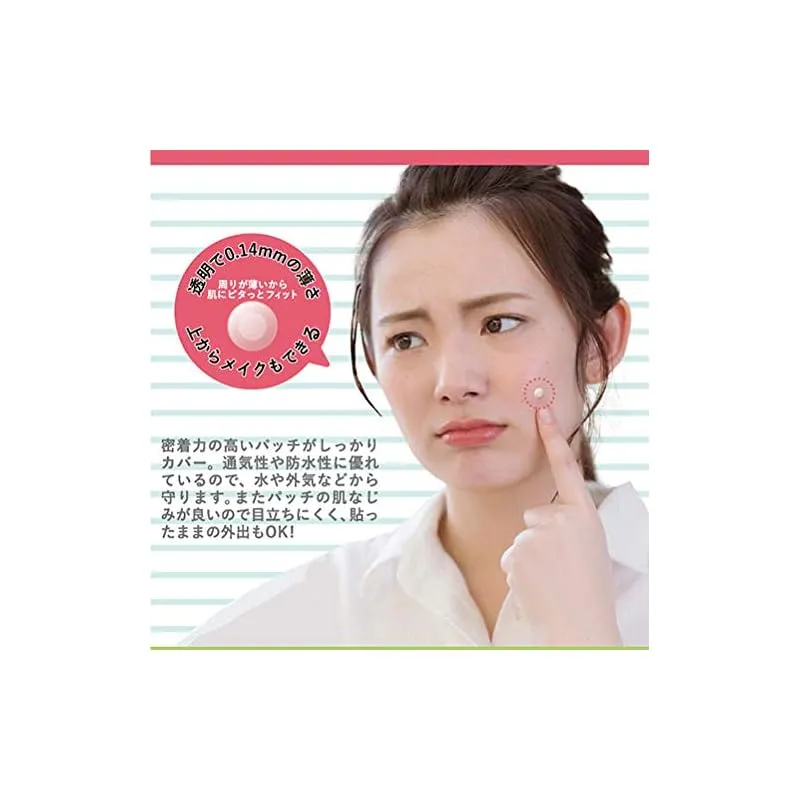 ■使用方法 1.使用した部分を軽く洗い、水気をしっかりとります。このとき、パッチを貼る部分には化粧水や乳液を塗らないようにしてください。剥がれやすくなる恐れがあります。 2.フィルムからパッチを剥がし、貼ります。3時間から12時間程度貼ったままにしてください。パッチの上からメイクもできます。 3.パッチを剥がすときは、そっと引くようにはがしてください。上手く剥がれないときは、水又はぬるま湯で少し濡らしてからはがしてください。