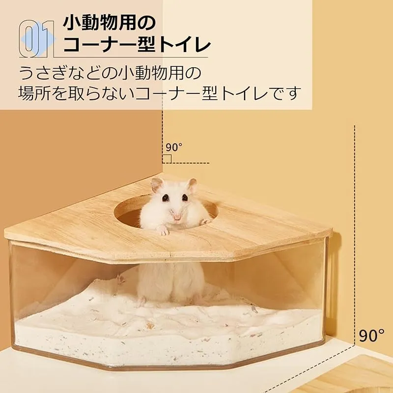 【商品内容】ハムスターのコーナー型トイレ 小 サイズ:13×13×8(cm) 材質:PS+天然木