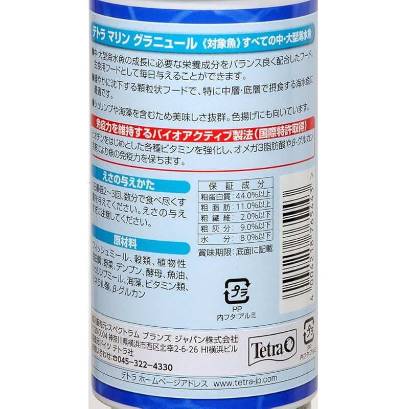 商品名:テトラ (Tetra) マリン グラニュール 110g 海水の餌 善玉菌の増殖を助けて 糞を分解 ニオイも汚れも抑えるフード 水をキレイに保つ 食いつき特化 おかわり給餌