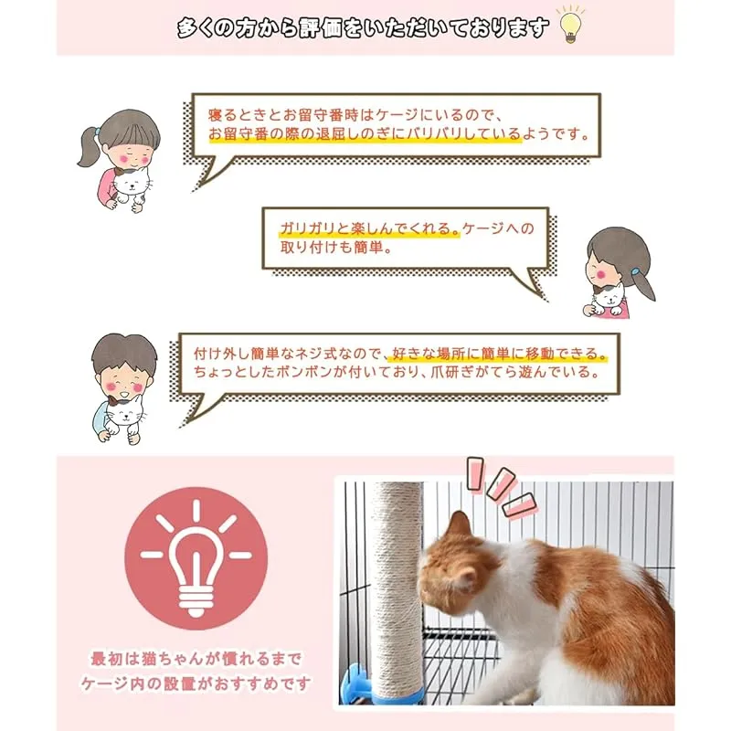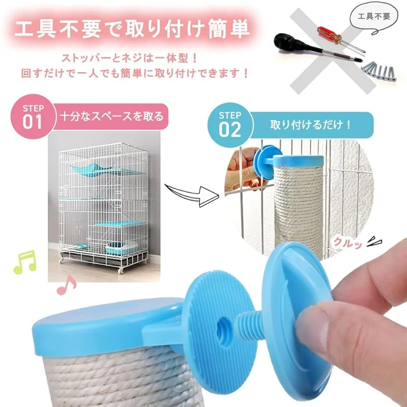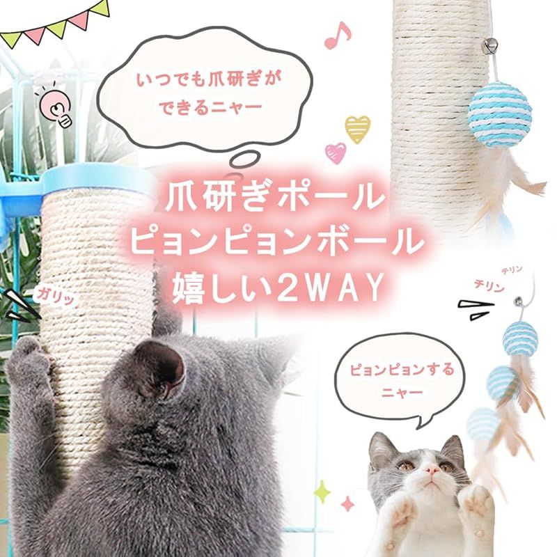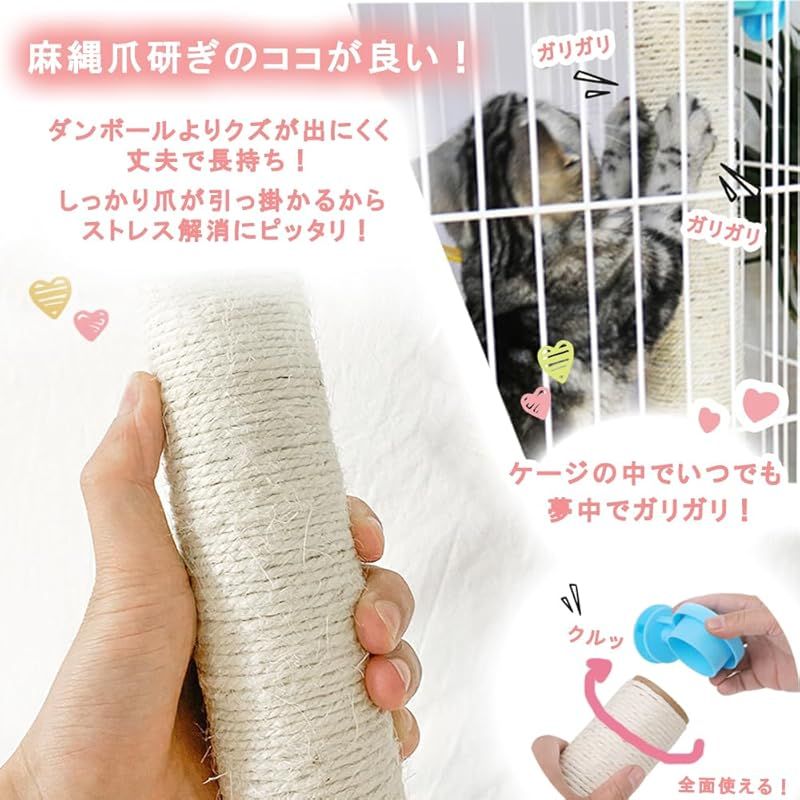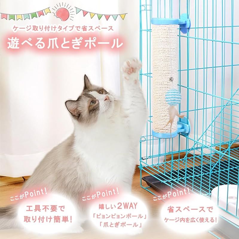商品名:遊べる爪研ぎポール 猫 爪研ぎ ケージ用 麻 おもちゃ ボール 工具不要 簡単取り付け 長さ41cm 省スペース