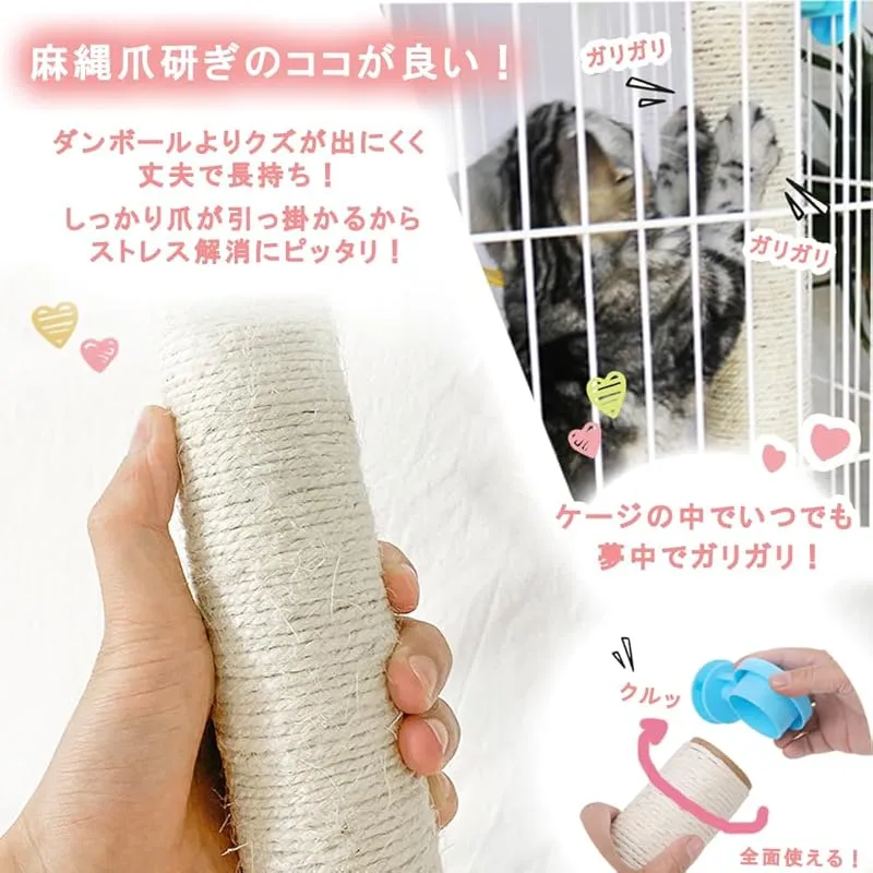 【爪研ぎをケージ内でも!】ストレスを解消したいとき、気分を切り替えたいときなど猫ちゃんにとって爪とぎは気持ちを落ち着かせるために必要不可欠!ケージ内に取り付けていつでも好きなタイミングでガリガリ爪とぎができます。
