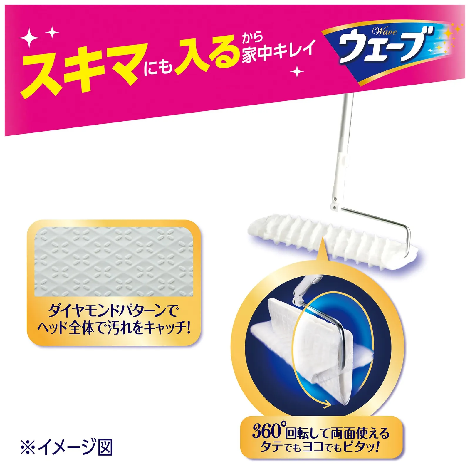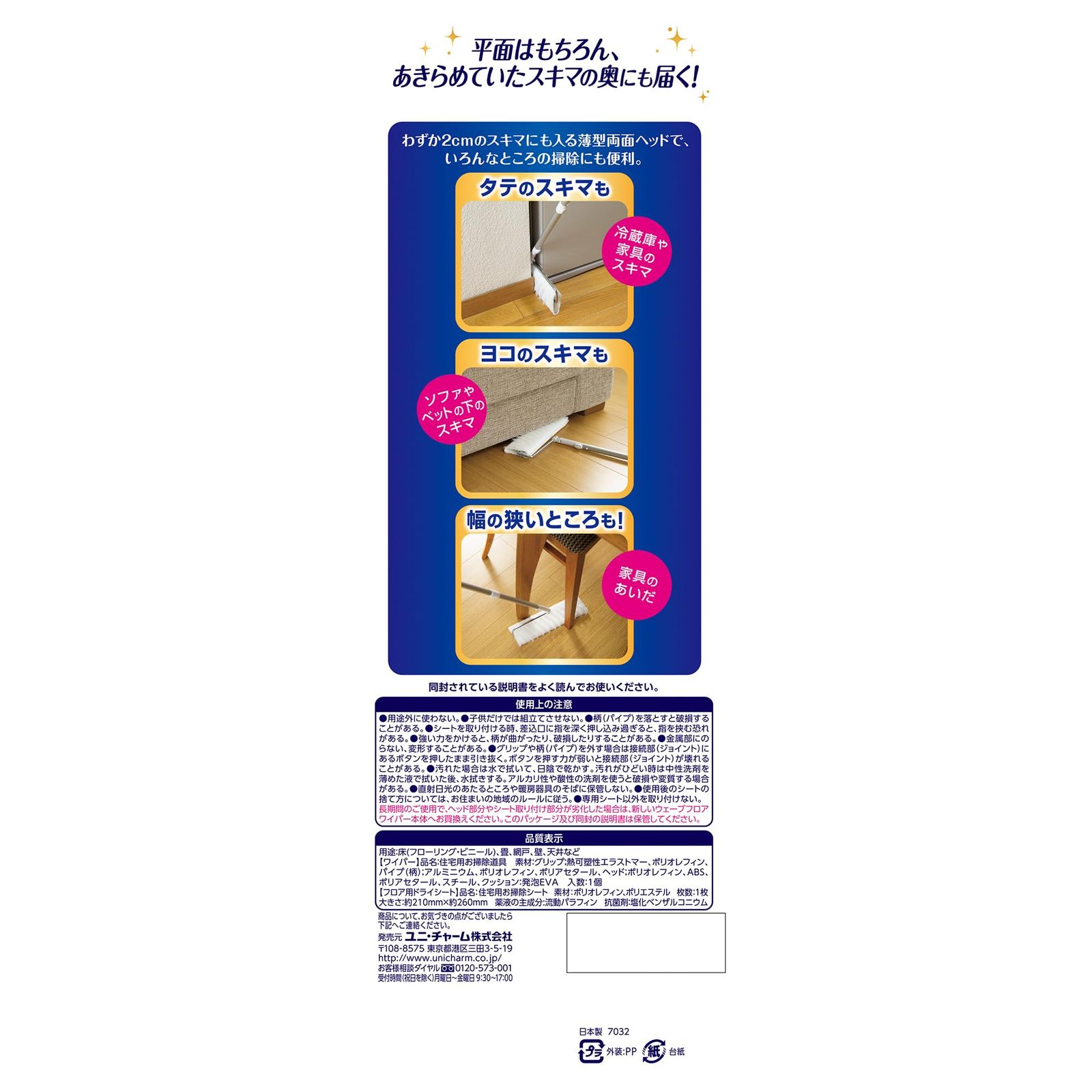 これ一本で、平面拭きもタテ拭きも、スキマの奥も、らくらくスムーズにお掃除