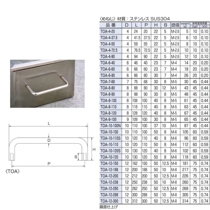 ●ステンレスの素材感が美しい鏡面仕上げの取手です。